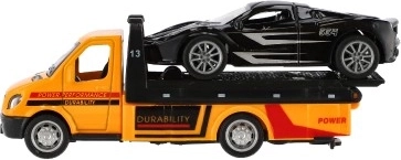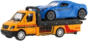 Mazs, bet jaudīgs evakuators ar mašīnīti iepriecinās katru mazo šoferi. Pateicoties inerces mehānismam (pull-back), transportlīdzekļi strauji izkustas, metāla–plastmasas izpildījums nodrošina izturību un detalizētu apdari, bet kompaktie 11 cm ir ideāli spēlēšanai mājās un ceļā.