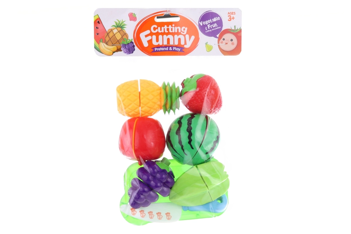 Izklaidējošs plastmasas augļu un dārzeņu komplekts griešanai bērniem no 3 gadu vecuma piedāvā lielisku pavāru lomu spēli. Atsevišķie gabali ir savienoti vidū ar velcro, tāpēc tos var atkārtoti griezt un atkal savienot. Veicina sīkās motorikas, roku–acu koordinācijas attīstību un rosina iztēli mājas spēlēs. Iepakojumā ir 14 gabali, un tas ir ideāls kā dāvana.