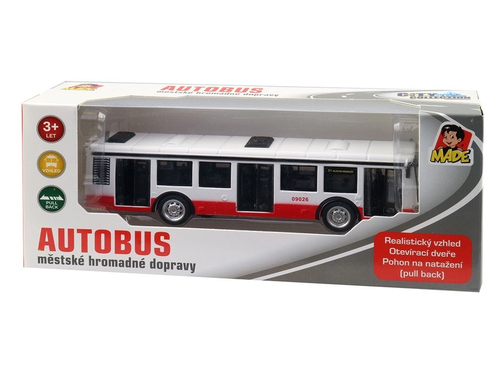 Stilīgs metāla autobuss ar latviskajam skatītājam pazīstamu pilsētas sabiedriskā transporta dizainu iepriecinās gan mazus, gan lielus MHD fanu. Tas piedāvā reālistisku izskatu, atveramas durvis un atpakaļgaitas uzvilkšanas piedziņu. Kompaktie izmēri ir ideāli bērna rokai, bet izturīgā metāla un plastmasas kombinācija nodrošina ilgu kalpošanas laiku.
