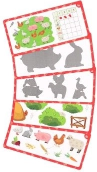 Piecas krāsainas kartītes ar dzīvniekiem un formām palīdz bērniem attīstīt uztveri, acu–roku koordināciju, kā arī trenē atmiņu un vērīgumu.