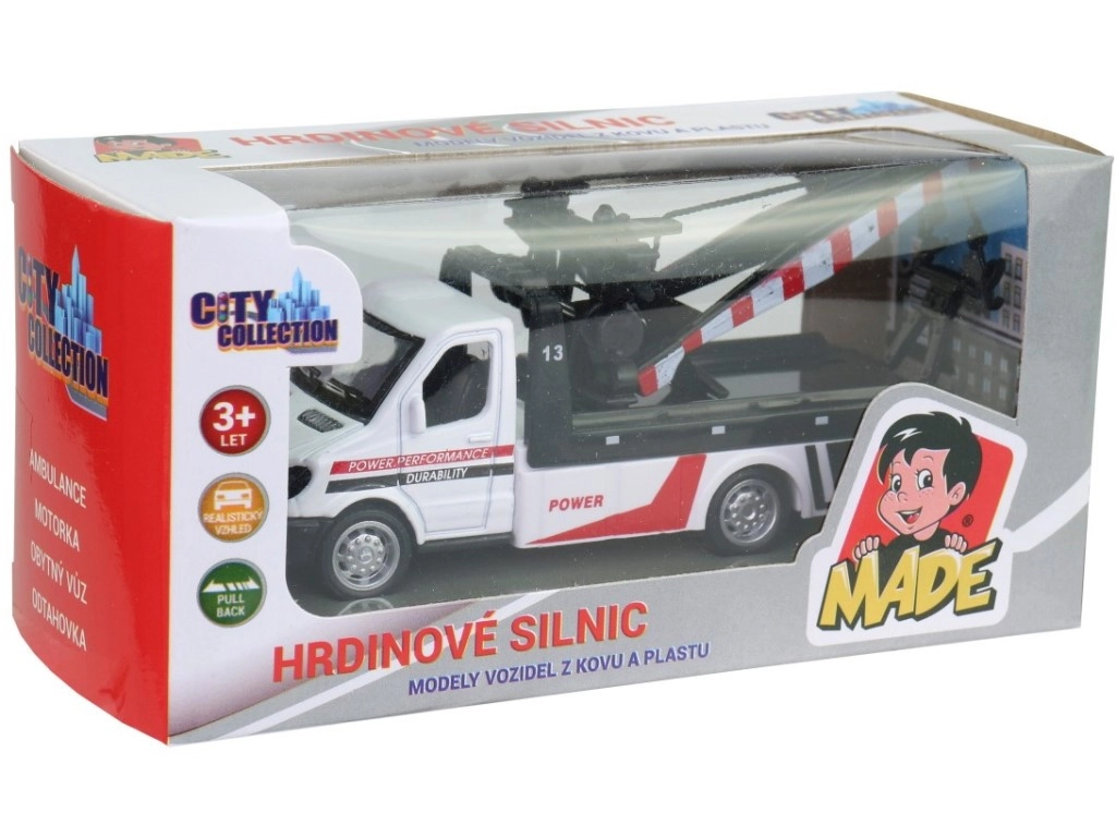 Kompakta evakuatora mašīna no City Collection ar atvilkšanas piedziņu sagādā bērniem no 3 gadu vecuma stundām ilgu izklaidi. Piedāvā realistiskas detaļas, izturīgu metāla un plastmasas kombināciju un divus krāsu variantus. Bez baterijām – vienkārši atvilkt un palaist. Ideāla dāvana mazajiem auto un pilsētas glābšanas transportlīdzekļu cienītājiem. Atvilkšanas piedziņa, izturīgs izpildījums, lieliski izmēri bērna rokai.