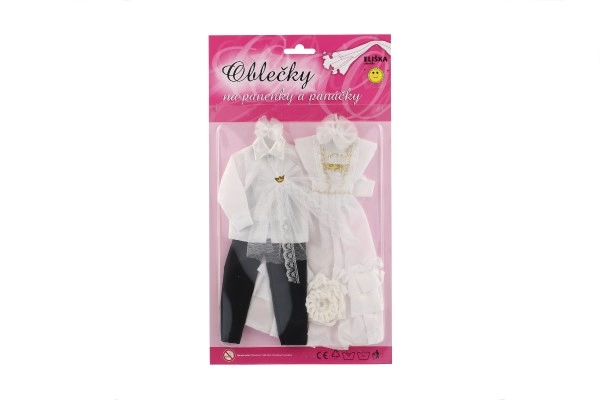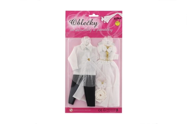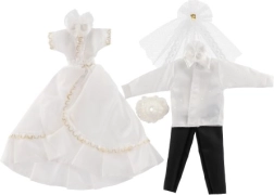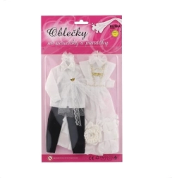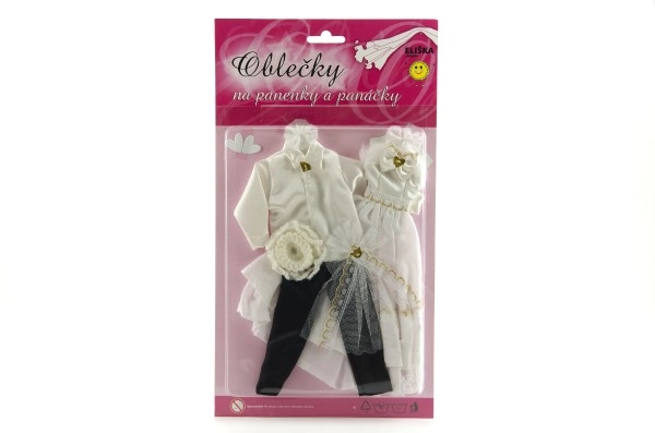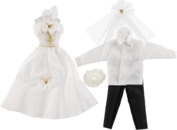 Ar šo unikālo kāzu apģērbu komplektu jūsu lelles var kļūt par jebkuru iedomu kāzu zvaigznēm! Tērpi ietver detalizēti izstrādātas kleitas un elegantu uzvalku, kas piešķirs jūsu kāzu stāstam burvību un mirdzumu.