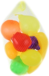 Šis krāsainais augļu komplekts ietver iecienītus veidus, piemēram, banānu, ābolu, apelsīnu, vīnogas un ananasu. Katrs gabals ir izgatavots no vieglas, izturīgas plastmasas ar noapaļotām malām drošai spēlei. Praktisks sietiņa iepakojums atvieglo pārnēsāšanu un uzglabāšanu.