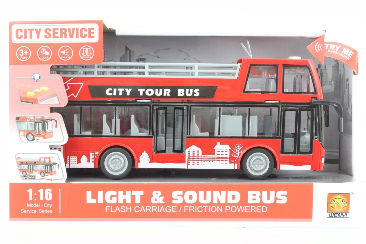 Šis detalizēti izstrādātais autobuss ir izgatavots no izturīgas plastmasas un piedāvā bērniem bezgalīgas rotaļu stundas. Pateicoties spilgti sarkanajai krāsai un realistiskām detaļām, katrs brauciens pārvēršas piedzīvojumā. Autobuss ir veidots tā, lai izdotu skaņu efektus, kas iepriecinās katru mazo vadītāju.