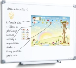 Magnētiņiem ir noapaļoti stūri drošai un ērtai lietošanai mazām rociņām. Uz magnētiņiem var arī rakstīt ar dzēšamu flomāsteri, kas sniedz papildu iespējas radošai izmantošanai.
