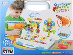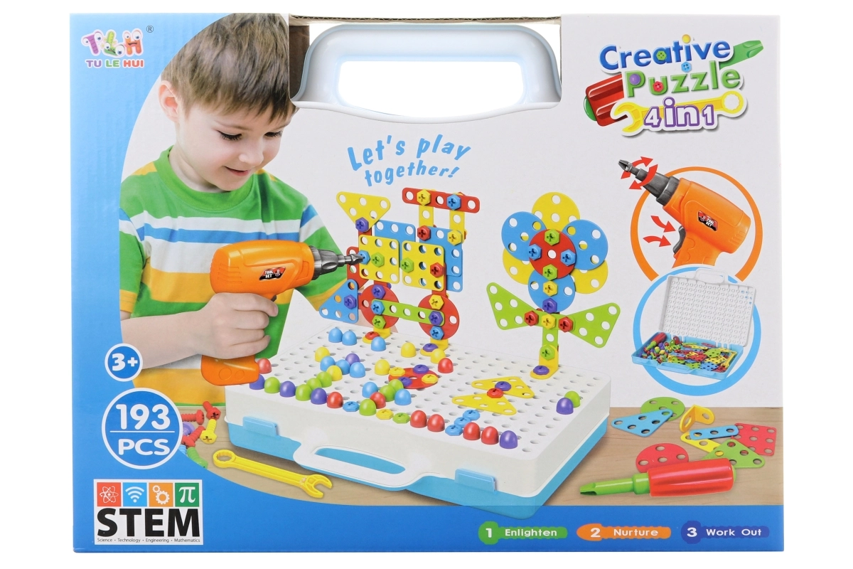 Izklaidējošs un radošs skrūvējams konstruktoru komplekts ar elektrisko urbi bērniem no 3 gadu vecuma piedāvā kopumā 193 detaļas visdažādāko modeļu veidošanai. Komplektā ietilpst ar baterijām darbināms urbis, skrūvgriezis un praktisks plastmasas koferītis ērtai uzglabāšanai. Iekļauta arī instrukcija vienkāršam startam un daudz iespēju attīstīt sīko motoriku, radošumu un loģisko domāšanu.