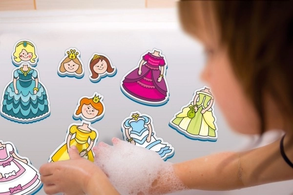 Ūdensuzlīmju komplekts “Mani pirmie pasaku stāsti – Princeses” ienes jautrību katrā vannošanās reizē. Vienkārši samitriniet un vieglīti pielīmējiet uz virsmas, lai bērni varētu radīt aizraujošas ainas: