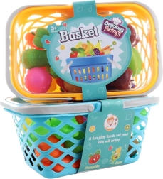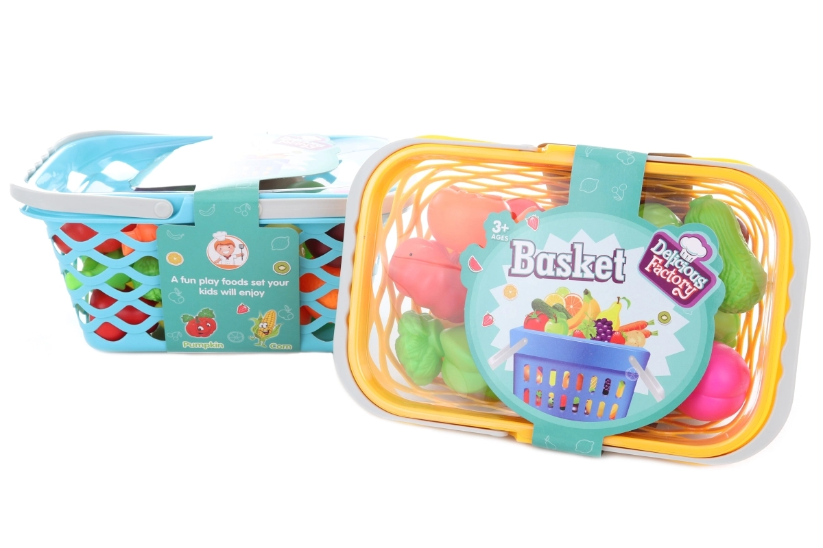 Šis krāsainais plastmasas augļu un dārzeņu komplekts groziņā iepriecinās ikvienu mazo gatavošanas un iepirkšanās cienītāju. Groziņš ar ventilējamu režģi un vāku kalpo kā ērta glabātuve un pārnēsājama somiņa, lai bērni varētu paņemt savu aprīkojumu jebkurai spēlei.