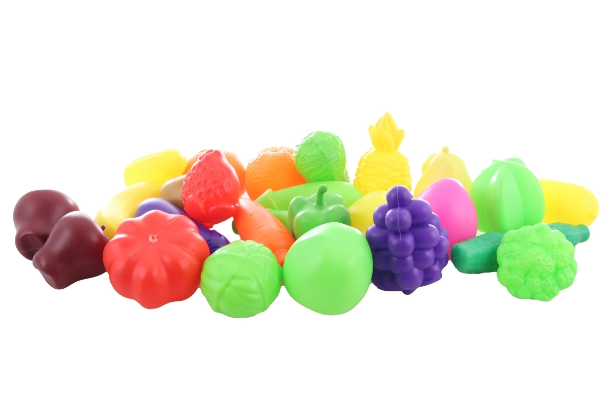 Vieglā un izturīgā plastmasa iztur ikdienas rotaļas. Bērni viegli apgūst pamata pārtikas veidus un krāsas.