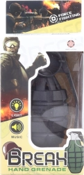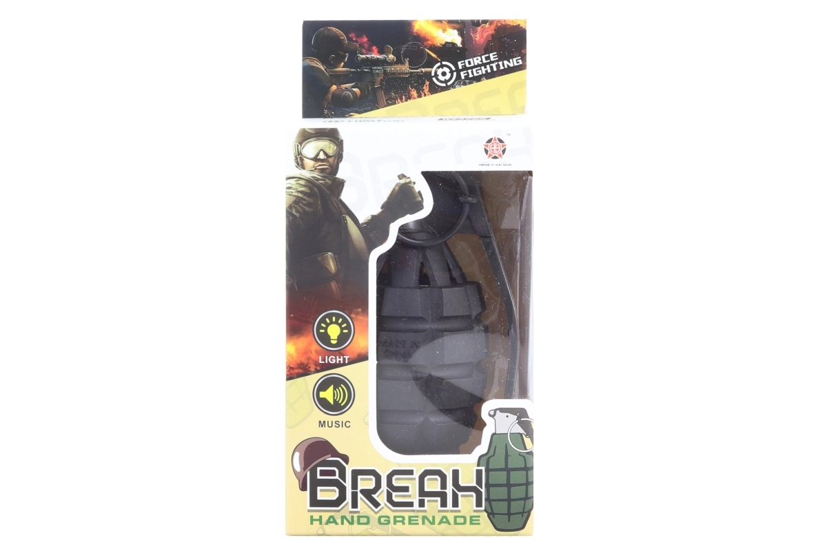 Izklaidējošs plastmasas granāts ar baterijām bērniem sniedz aizraujošu pieredzi ar skaņas efektiem. Nospiežot tas izdod tikteikšanu un pēc tam sprādziena skaņu. Komplektā ir 3 AG13 baterijas, tāpēc spēle var sākties uzreiz pēc izsaiņošanas. Piemērots bērniem no 3 gadu vecuma.