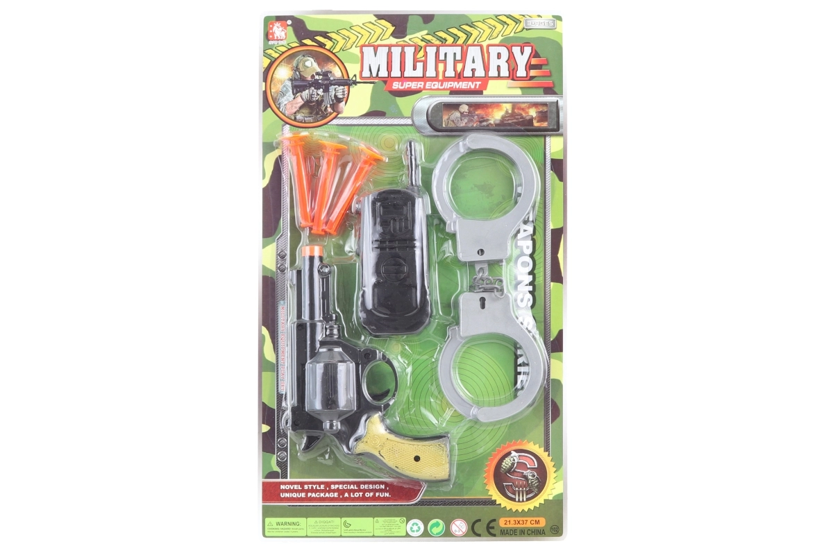 Šis militārais komplekts sniedz bērniem daudz jautrības un rosina iztēli, spēlējot kārtības sargus vai speciālās vienības. Pateicoties drošajām lodītēm ar piesūcekni un vieglajam dizainam, spēle ir droša un ērta.