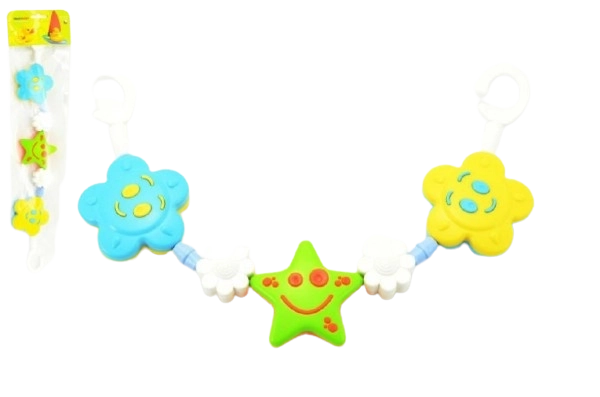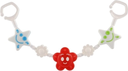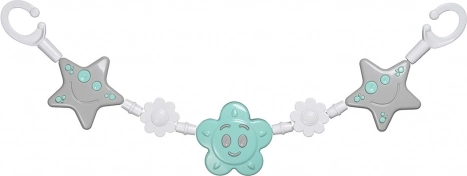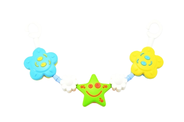Šī košā ķēdītes tipa rotaļlieta ar saulīti un zvaigznītēm viegli piestiprinās pie ratiņiem, autokrēsliņa vai gultiņas. Tā veicina vizuālo uztveri, sīkās motorikas attīstību un izklaidē mazuli gan ceļā, gan mājās. Pateicoties izturīgam plastmasas materiālam un drošam izpildījumam, tā ir ideāli piemērota ikdienas lietošanai.