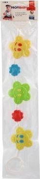 Āķi abos galos ļauj ātri piestiprināt pie ratiņiem, autokrēsliņa vai gultiņas. Rotaļlieta turas stabili un netraucē mazulim.