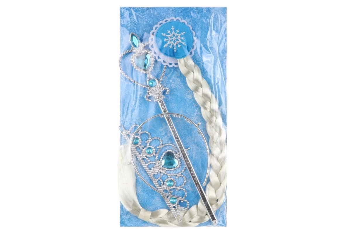 Šis valdzinošais skaistumkopšanas komplekts ir lielisks papildinājums jebkuram bērnu istabas rotaļu stūrim. Bērni viegli radīs savu pasaku stāstu ar kroni, zizli un blondo bizi, ko var vienkārši piešņorēt un noņemt.
