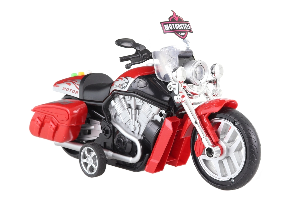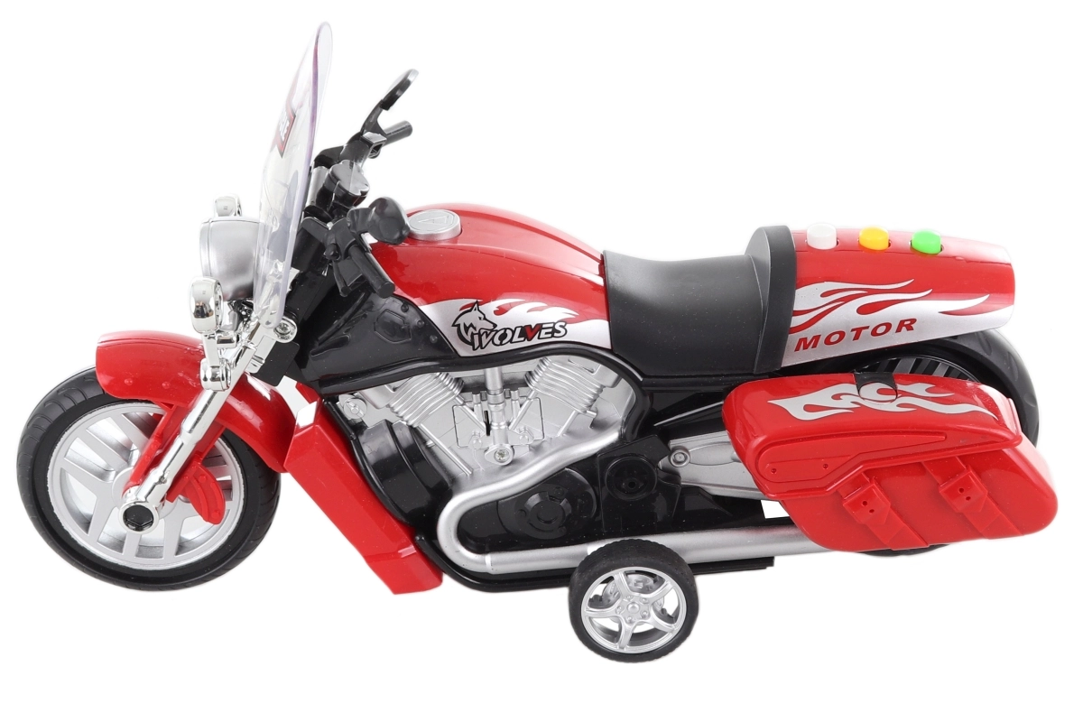 Šis detalizēti izstrādātais motocikls iepriecinās ikvienu mazo transportlīdzekļu entuziastu. Pateicoties gaismas efektiem un autentiskām skaņām, tas sniedz reālistisku spēles pieredzi. Kompaktie izmēri (apm. 29 × 17 cm) lieliski der bērna rokai un rosina radošu spēli.