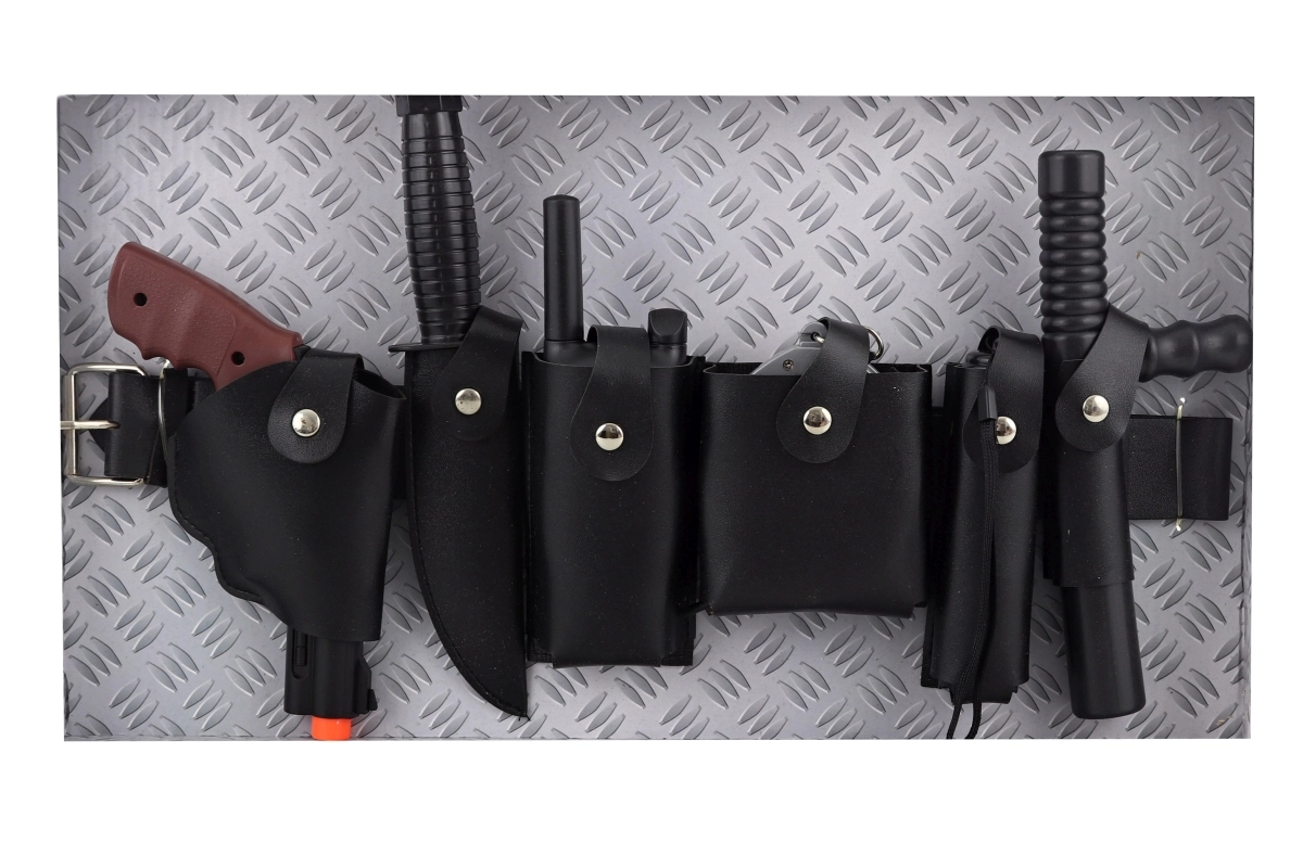 - Ādas josta (aptuveni 43 cm), pistole, nazis, rācijas imitācija, rokudzelži, bateriju lukturītis, steķis