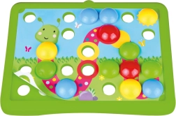 Izklaidējoša mozaīka ar dabas motīviem pašiem mazākajiem bērniem attīsta sīko motoriku, krāsu apguvi un koordinācijas prasmes. Pateicoties lielām tapas pogām un vieglāk trāpāmiem caurumiem, bērni no 2 gadu vecuma ar to ātri iedraudzēsies. Komplektā ir 7 krāsainas šablonas un 36 tapas no izturīgas plastmasas.