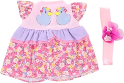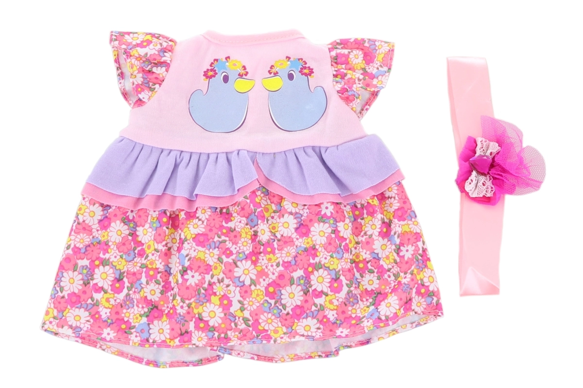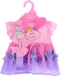 Mīlīga kleitiņa lellei 40–45 cm izmērā iepriecinās ikvienu mazo māmiņu. Tā piedāvā mīkstu tekstila materiālu, smalkas volāniņas un rotaļīgas aplikācijas, pateicoties kurām bērns var viegli pārģērbt lelli un attīstīt fantāziju.