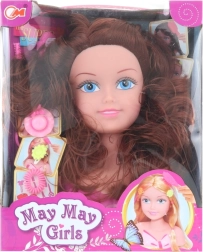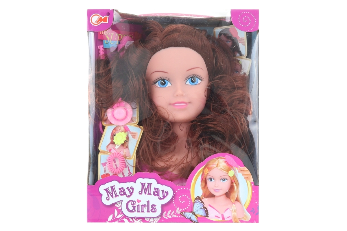 Izklaidējoša frizierēšanas galva mazajām frizierēm ar bagātīgiem piederumiem frizūru veidošanai. Ietver reālistiskus brūnus matus, stabilu pamatni un komplektu ar gumijām, sprādzītēm un ķemmīti bezgalīgām frizūru variācijām. Ideāli piemērota radošuma un sīko motorisko prasmju attīstīšanai bērniem no 3 gadu vecuma.