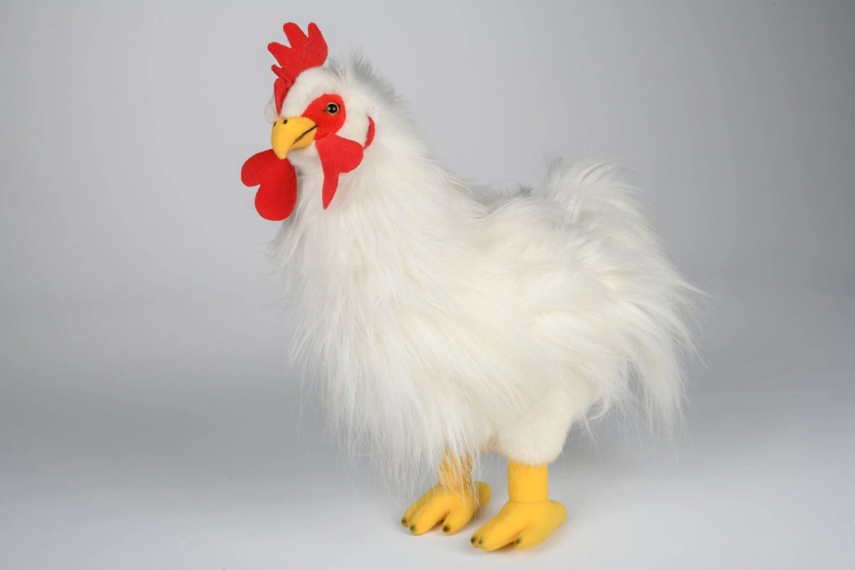 Šis pūkainais gailis ir ideāls papildinājums jebkura bērna istabai. Tas ir ne tikai mīlīgs, bet arī lieliski piemērots mīļošanai.