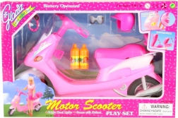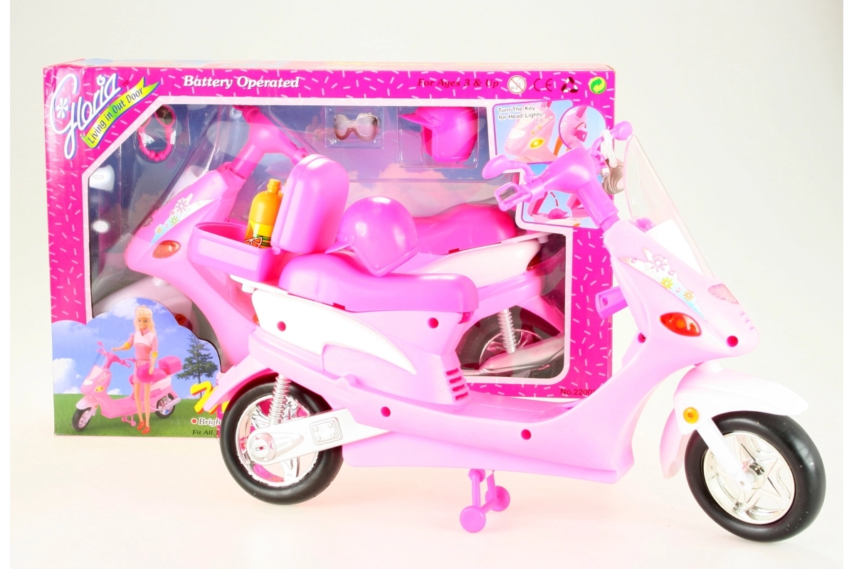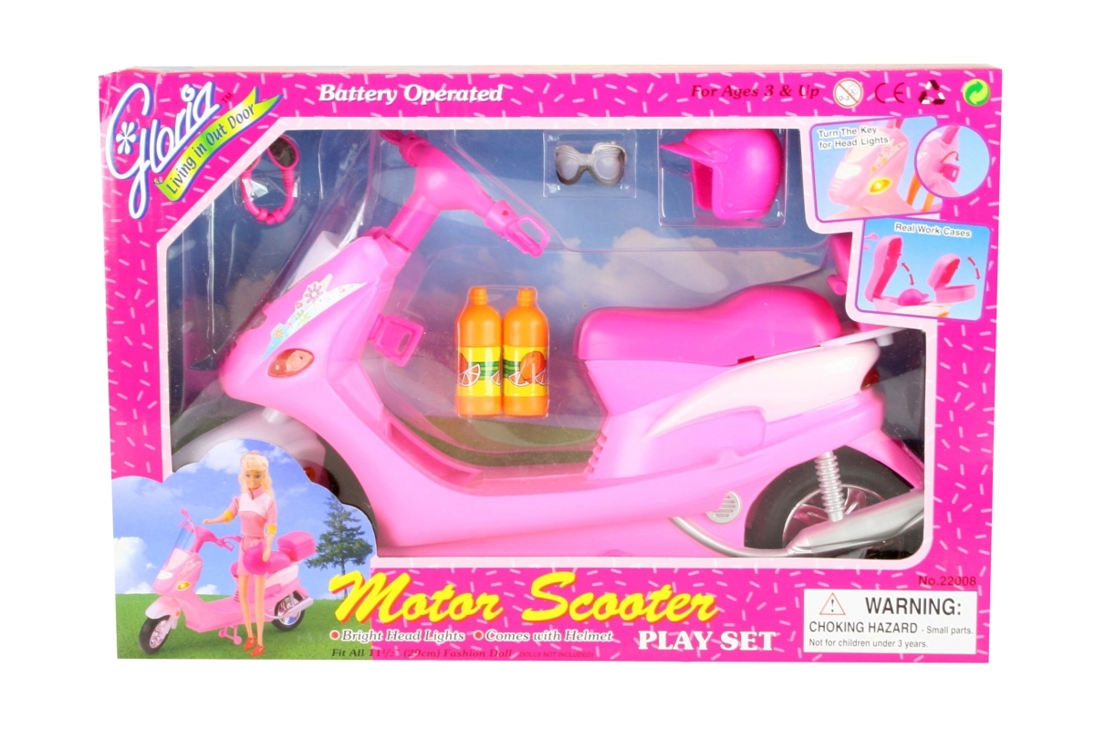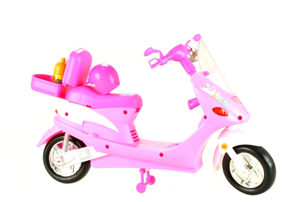 Skūtera priekšējie lukturi iedegas, pagriežot atslēgu, kas piešķir tam autentiskumu. Sagatavojieties piedzīvojumiem ar lellēm, pateicoties aizmugures bagāžniekam ar atveramu vāku sīklietu glabāšanai. Komplektā ir arī stilīgas brilles, ķivere un divas plastmasas pudeles, lai jūsu lelles vienmēr būtu gatavas ceļam.