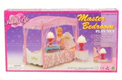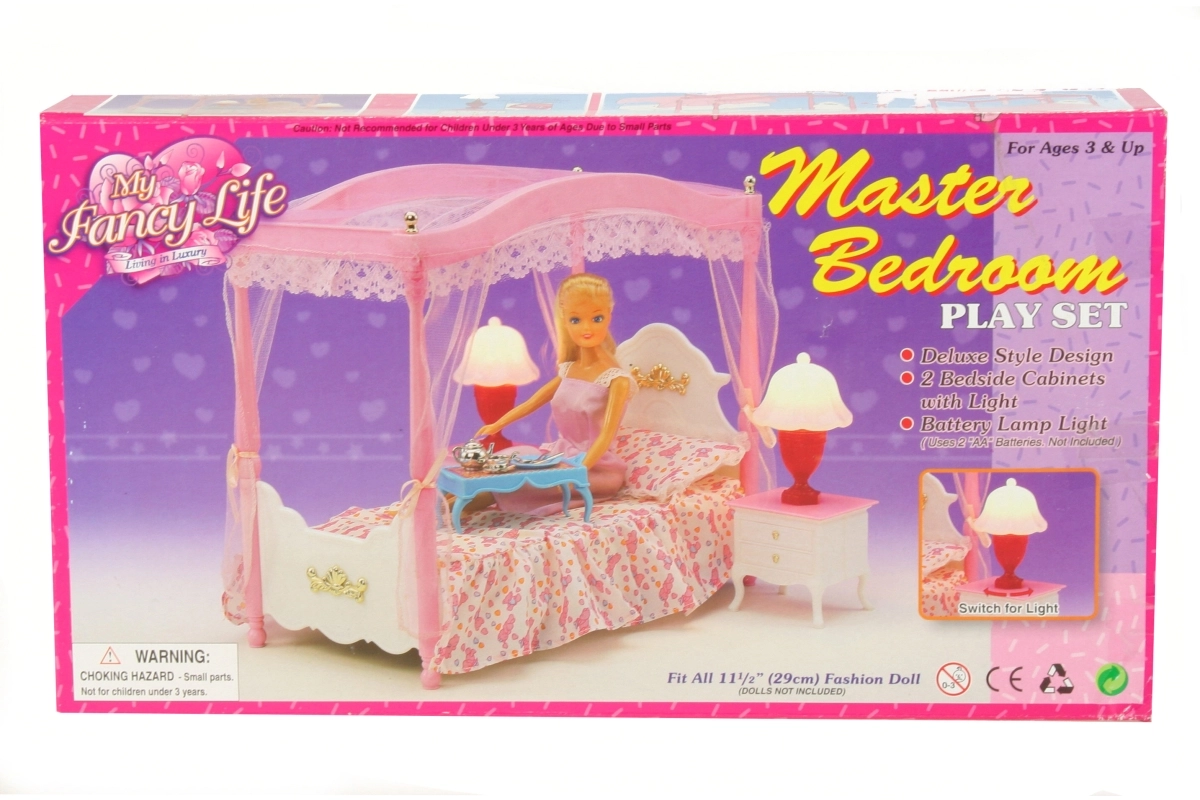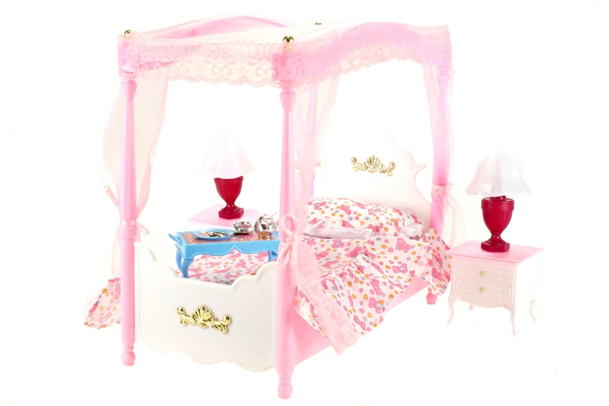 Šī detalizēti izstrādātā baldahīna gulta pārvērtīs leļļu istabiņu mājīgā karaļvalstī. Pateicoties bagātīgajam piederumu komplektam un funkcionālajām lampiņām, bērni izbaudīs daudz reālistisku scenāriju un izklaides. Kvalitatīvs plastmasas izpildījums nodrošina izturību un vieglu kopšanu.