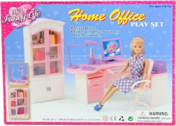 Stilīgs GLORIE biroja komplekts lellēm pārvērtīs jebkuru istabiņu radošā darba vietā. Komplektā ietilpst rakstāmgalds ar datoru, printeri un augstumā regulējamu lampu, krēsls un grāmatplaukts. Lieliski piederumi reālistiskai spēlei, kvalitatīvs izpildījums un bagātīgs aprīkojums iepriecinās katru bērnu no 3 gadu vecuma. Lelle nav iekļauta komplektā.
