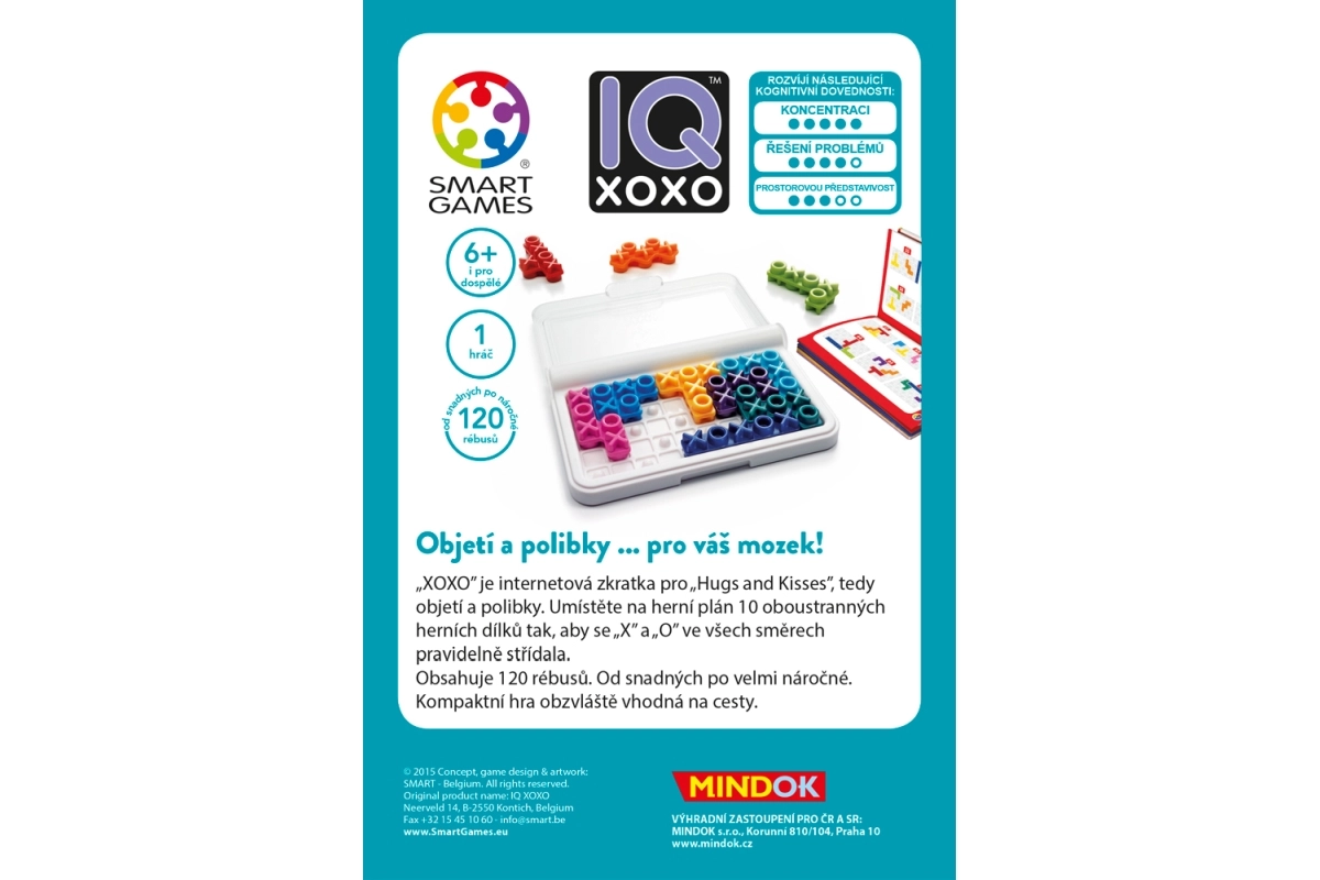 Mindok Smart IQ XOXO piedāvā jūsu smadzenēm ilgtermiņa un saistošu izaicinājumu. Novietojiet uz spēles plāna 10 abpusējus gabaliņus tā, lai "X" un "O" regulāri mijas.