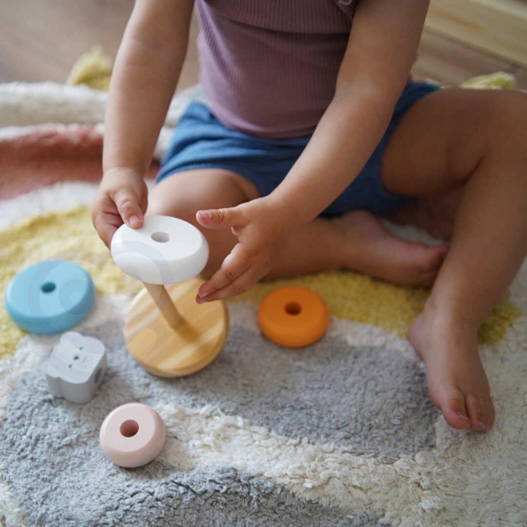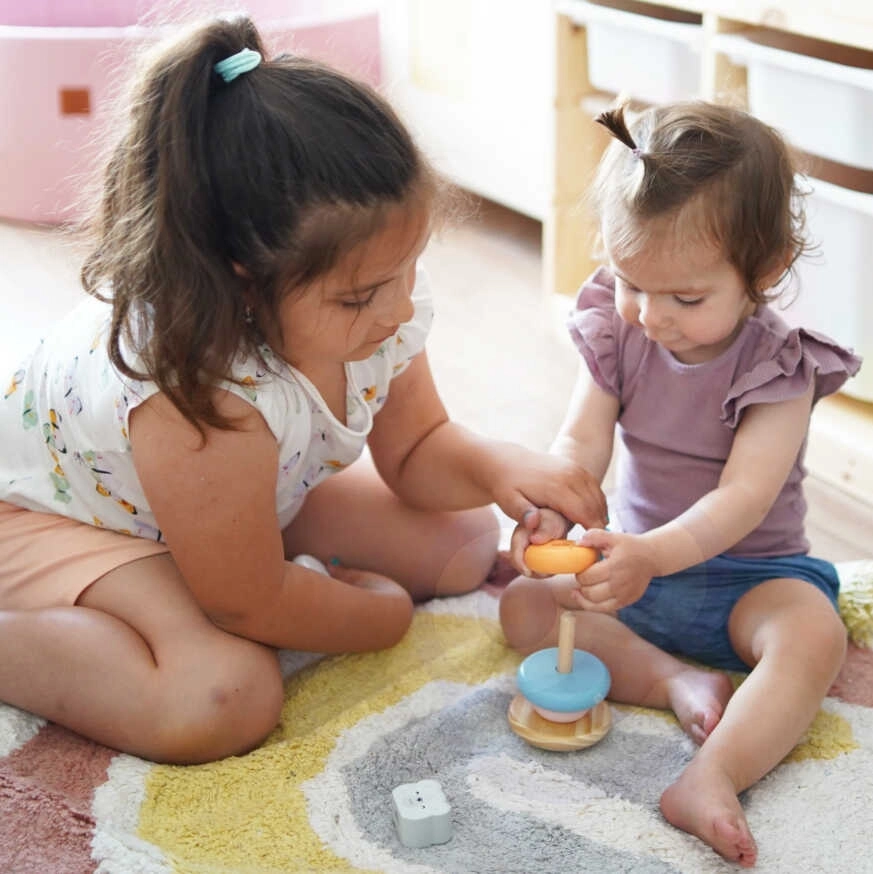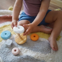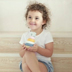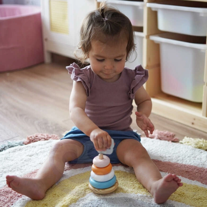 Spēlēšanās ar piramīdu palīdz attīstīt roku-acu koordināciju, loģisko domāšanu un bērnu radošumu.