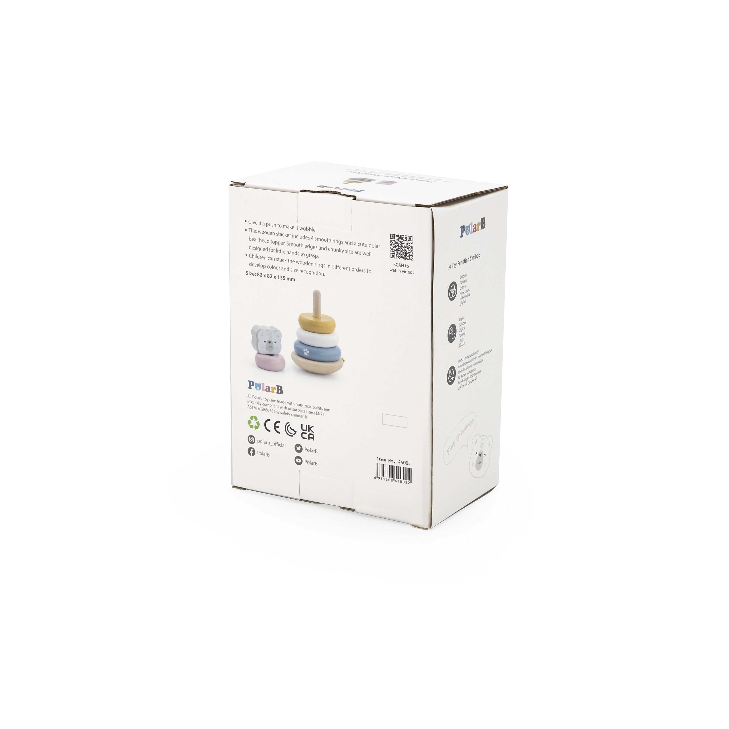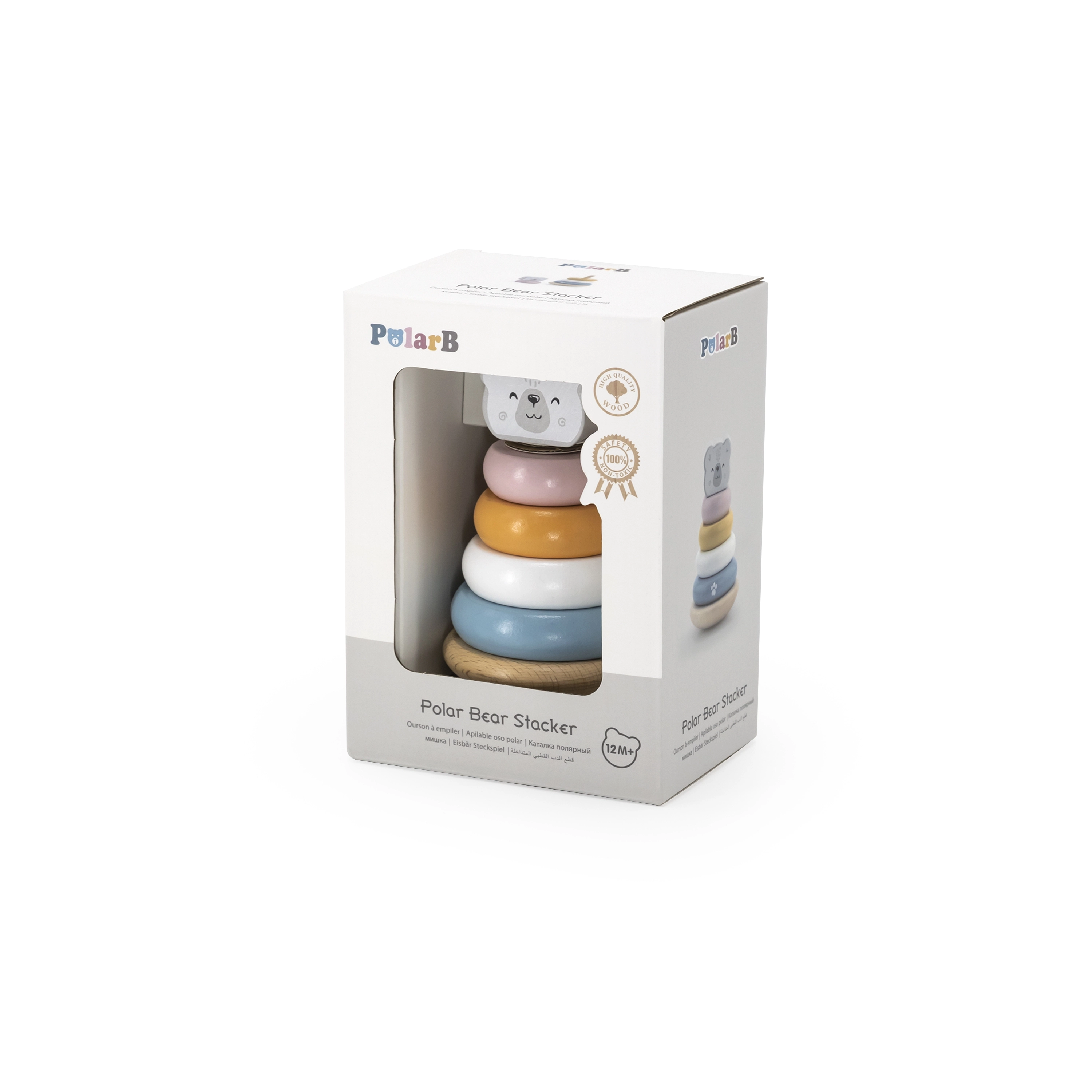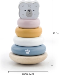 Koka izglītojošā piramīda ar Polārlāča motīvu ir ideāla rotaļlieta pašiem mazākajiem. Piramīdai ir seši gredzeni dažādos izmēros un krāsās, tostarp viens galvenais gredzens ar lāča galvu. Pateicoties izturīgajai koka konstrukcijai, rotaļlieta ir ne tikai droša, bet arī izturīga.