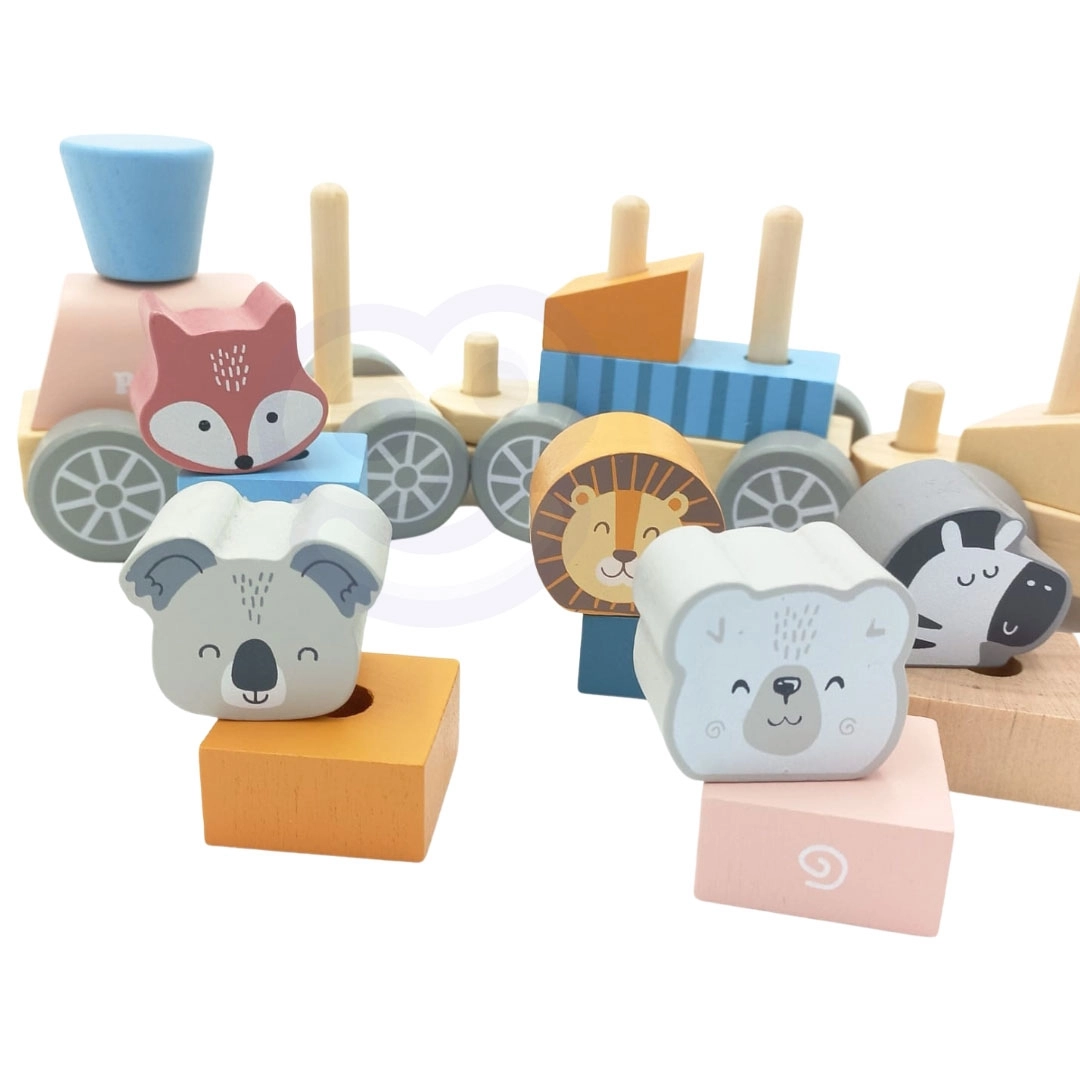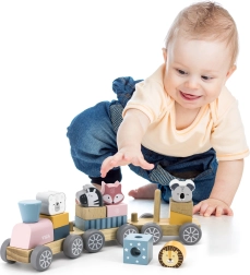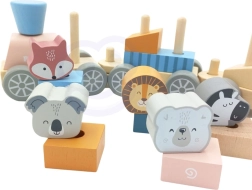 Koka rotaļlieta vilcieniņš ir ideāls līdzeklis bērnu radošuma un motorisko prasmju attīstīšanai. Ar maigiem pasteļtoņiem un ērti satveramiem klučiem šis vilcieniņš piesaista uzmanību un nodrošina ilgas stundas aizraujošas būvēšanas un spēlēšanās.