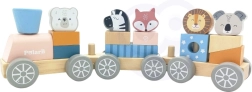 Komplektā ir lokomotīve ar trim savienotiem vagoniņiem, kas ļauj daudzveidīgi likt un kombinēt ar dzīvnieciņiem dekorētus blokus. Spēles laikā bērni attīsta problēmu risināšanas spējas un kustību koordināciju.