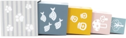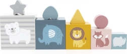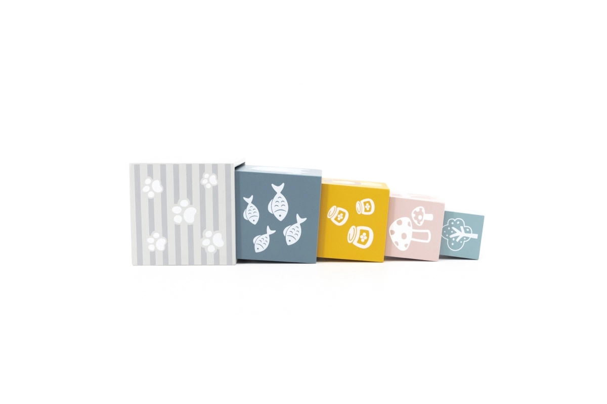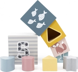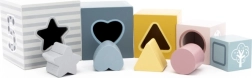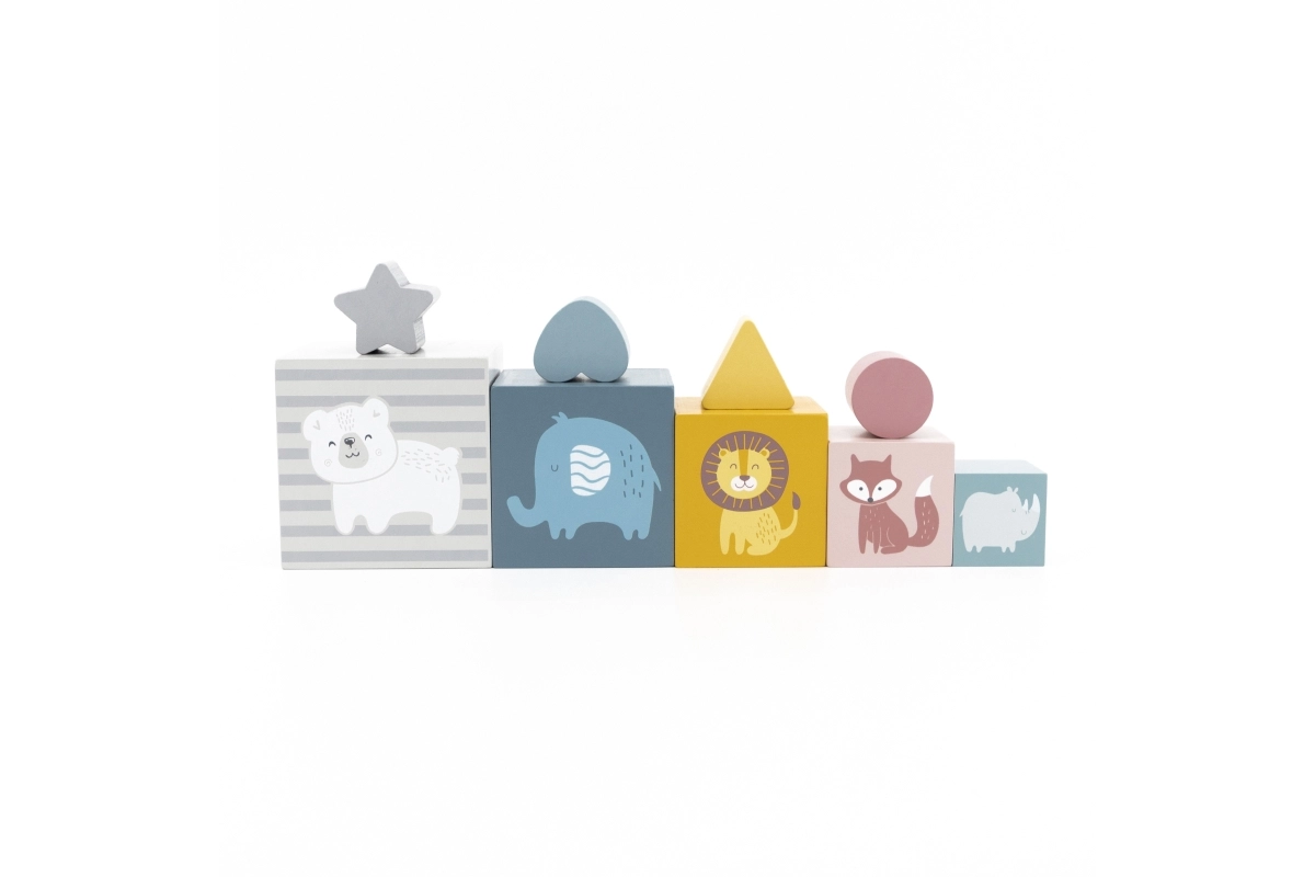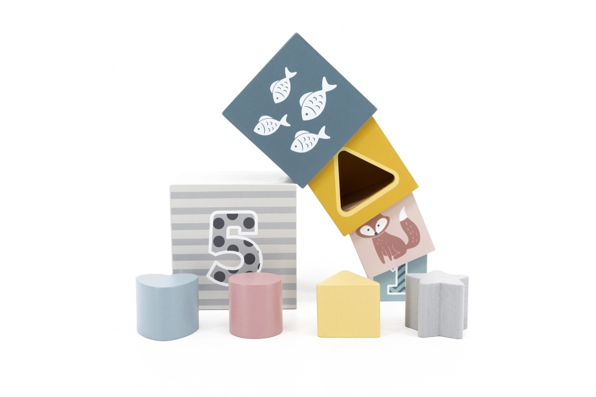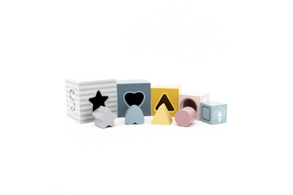 • 5 dažāda izmēra kastes un 4 ģeometriskus blokus