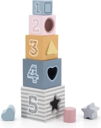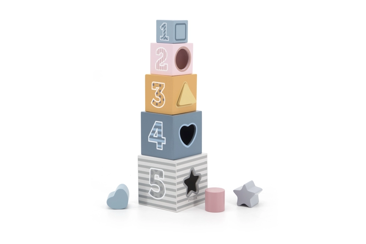 • Izgatavots no lakota koka un krāsots ar netoksiskām krāsām polāros toņos, kas nodrošina priecīgu un drošu rotaļu