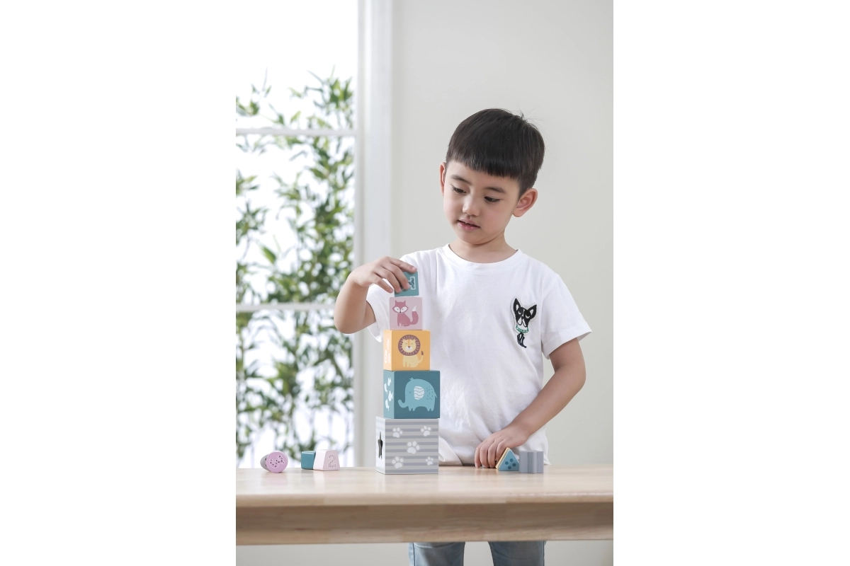 • Bērni var brīvi salikt klučus, apgūt skaitļus, pieskaņot formas šķirotājā un iepazīt dzīvniekus