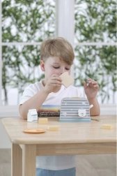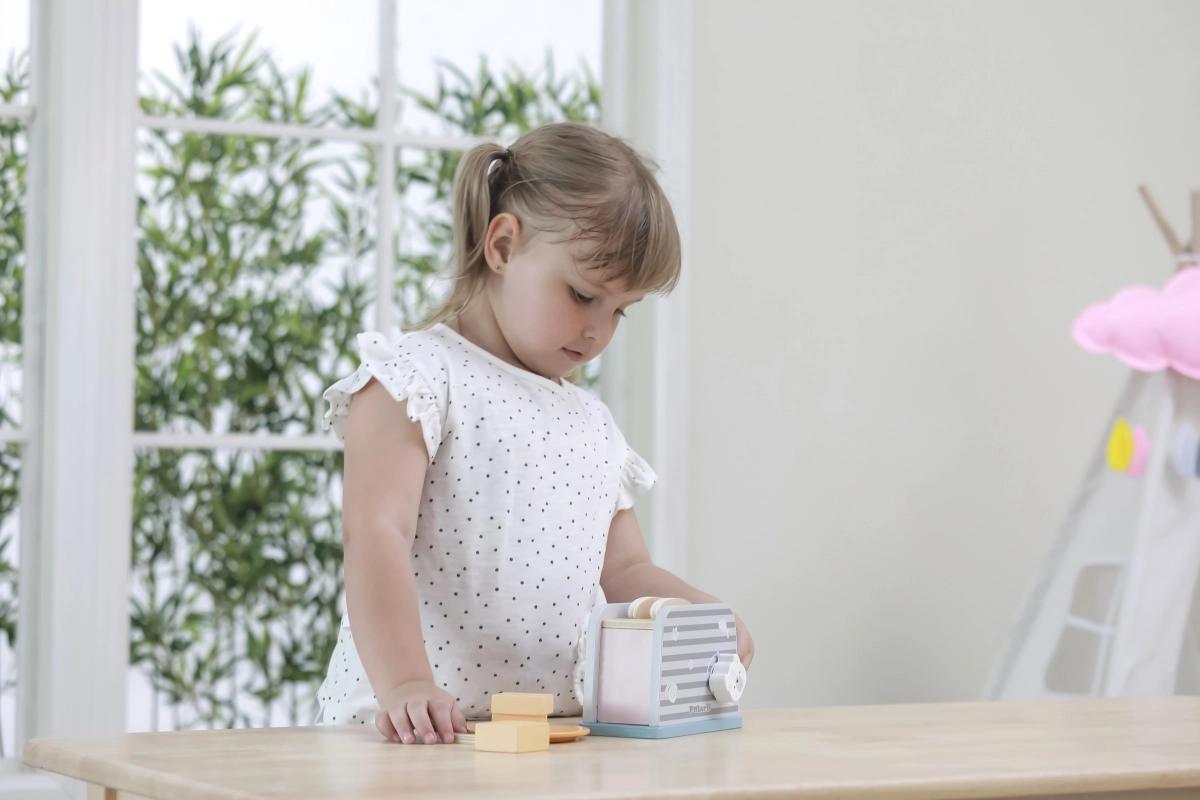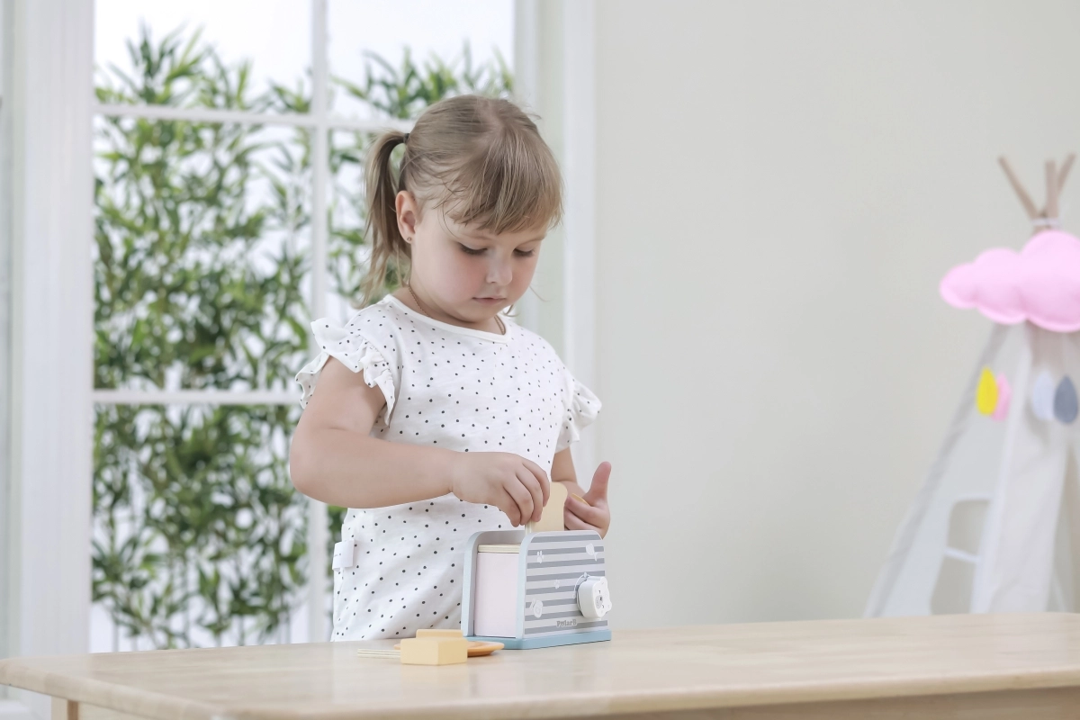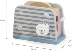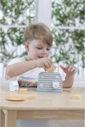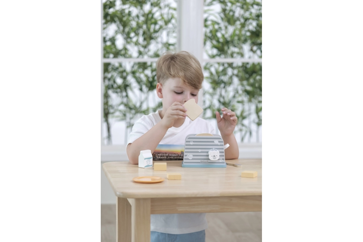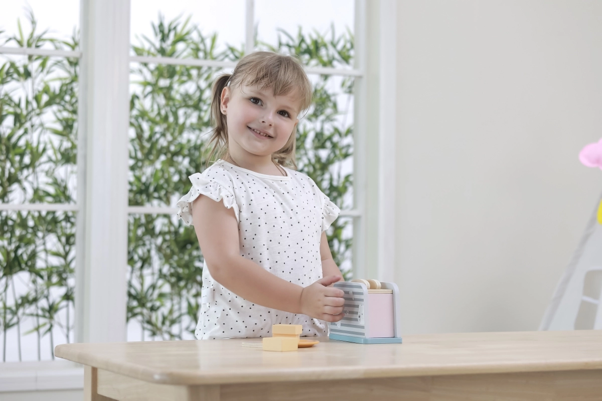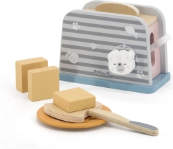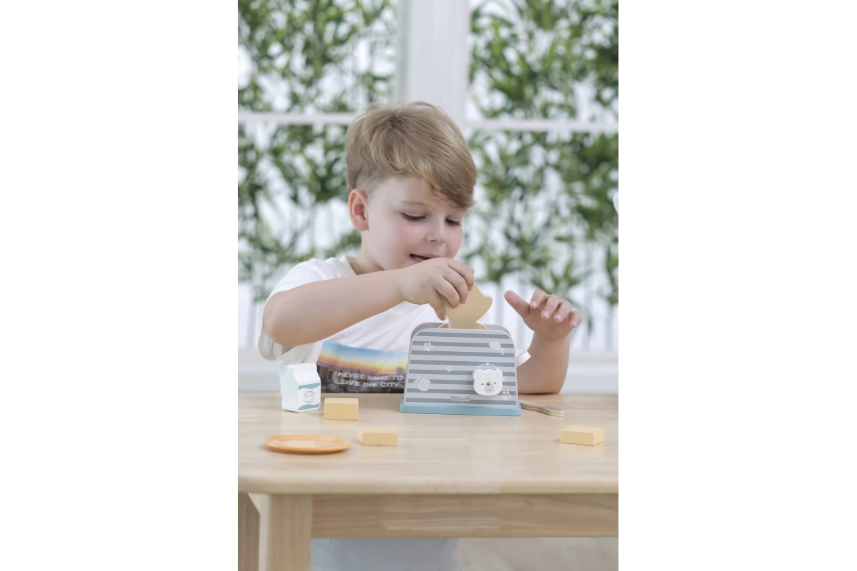 Koka tosteris ir veidots tā, lai bērniem nodrošinātu drošu un aizraujošu spēli virtuvē. Vienkāršs dizains un izturīga konstrukcija padara to ideāli piemērotu rotaļām ar iztēli un motorisko prasmju attīstīšanai.