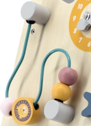 Priekšējais panelis ietver dažādas aktivitātes, kas stimulē bērna radošumu un mācīšanos.