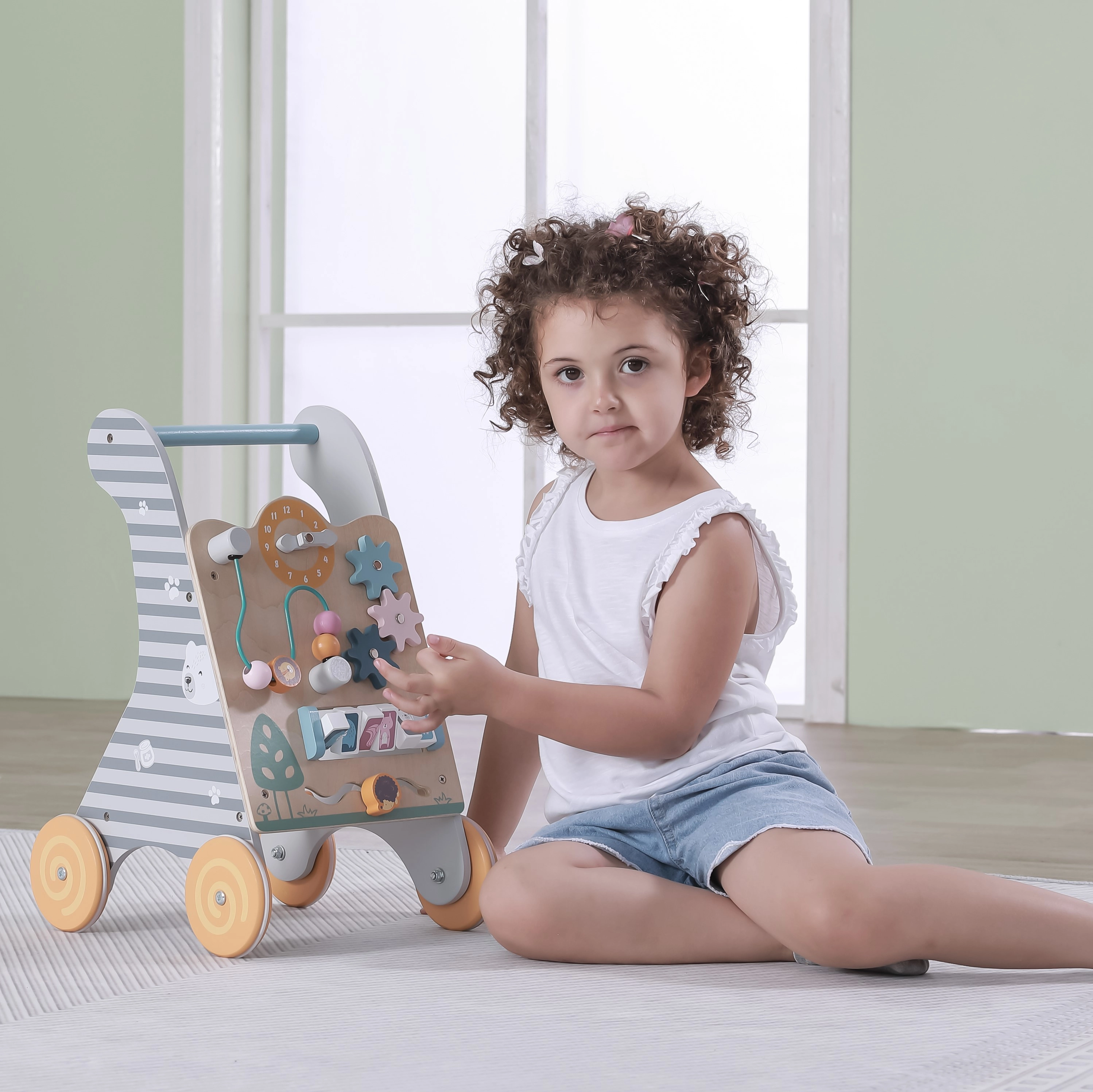 Staigulis palīdz attīstīt bērna motorikas prasmes, pateicoties drošai konstrukcijai un interaktīviem elementiem.