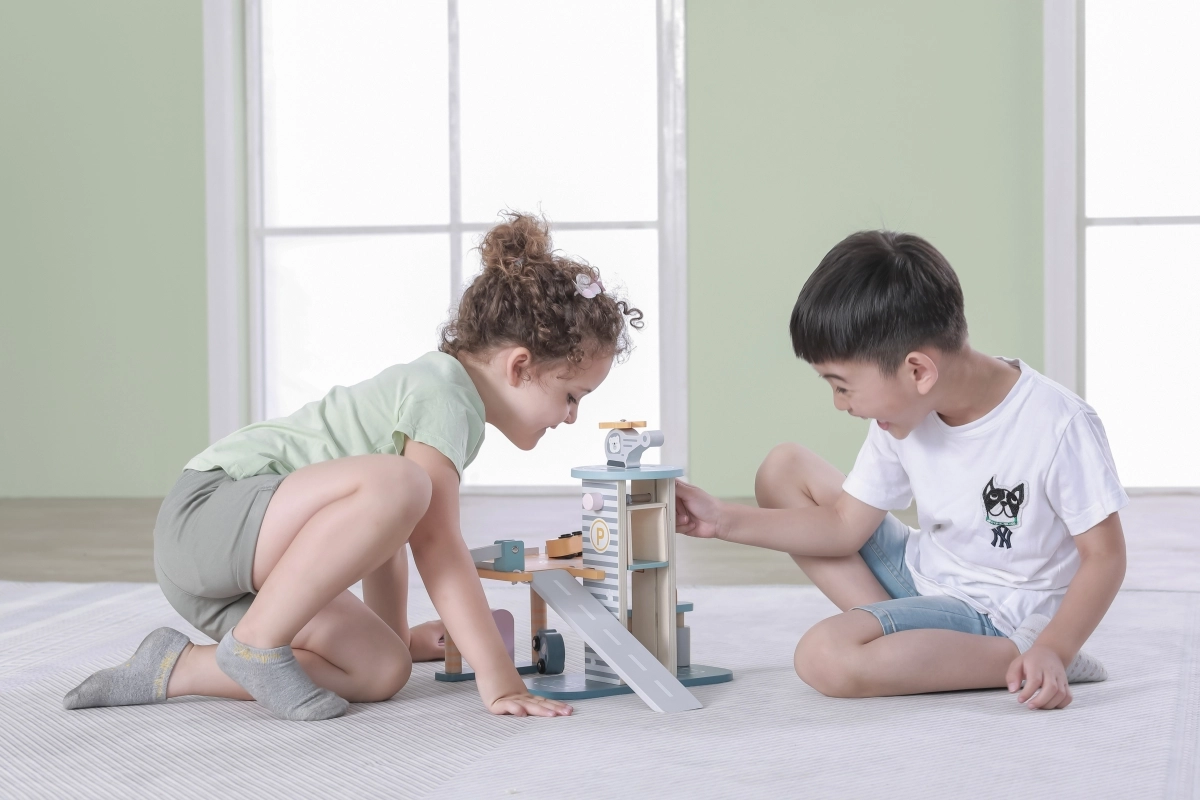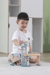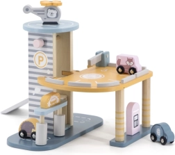 Koka garāža ar helikopteru un mašīnītēm ir lieliska rotaļlieta, kas veicina bērnu radošumu un motorikas attīstību. Šī interaktīvā rotaļlieta ir aprīkota ar automazgātavu, degvielas uzpildes staciju un liftu. Komplektā ietilpst trīs mašīnītes un viens helikopters, viss maigos toņos, kas labi iederas jebkurā bērnu istabā.