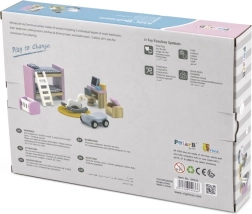 Komplektu var paplašināt ar citiem istabu komplektiem no POLARB sērijas (guļamistaba, viesistaba, virtuve, vannasistaba), izveidojot visu namiņu tieši pēc savām iecerēm. Pateicoties kvalitatīviem materiāliem un netoksiskām krāsām, rotaļas ir drošas un vienlaikus veicina sīko motoriku, komunikāciju un loģisko domāšanu.