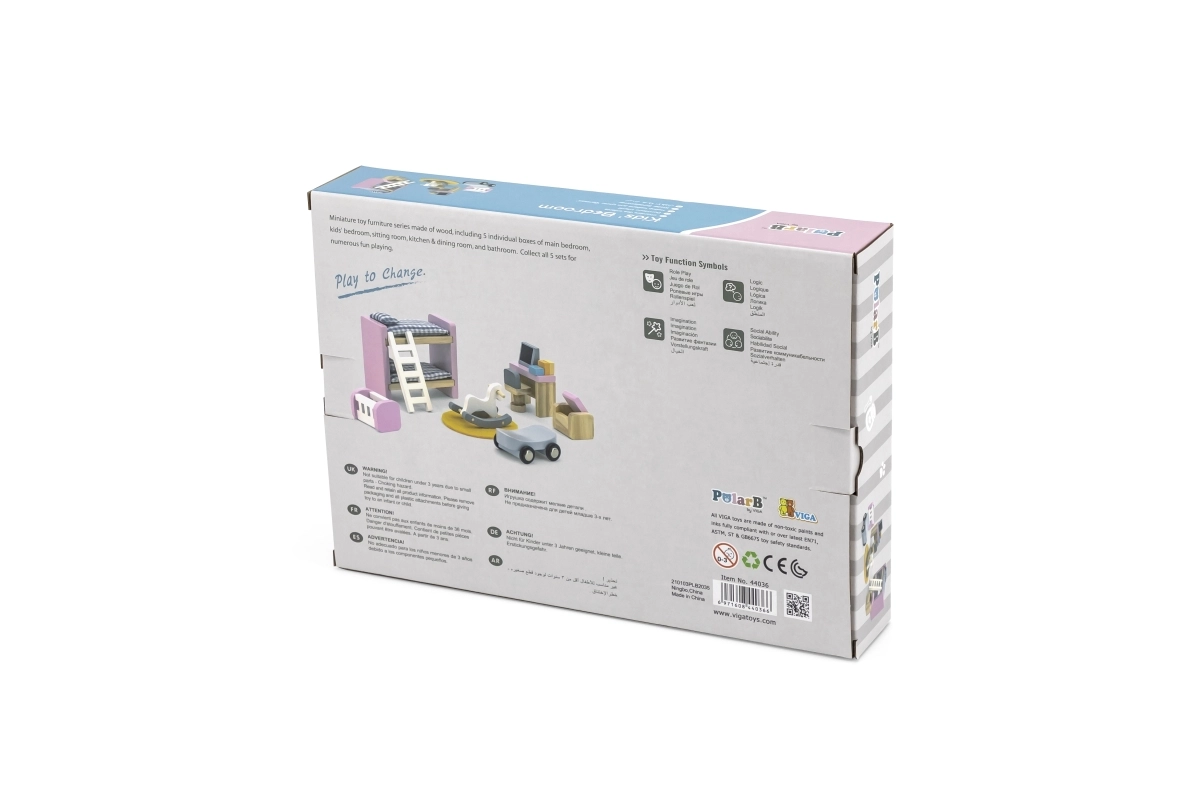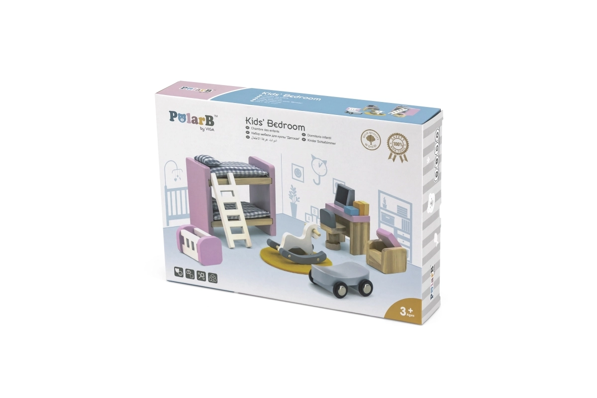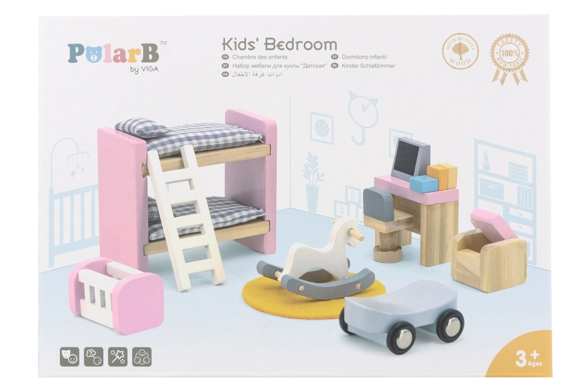 Koka mēbeļu komplekts Bērnu istaba VIGA POLARB pārvērtīs jebkuru leļļu namiņu reālistiskā un rotaļīgā vidē. Precīzi izstrādātās miniatūras pasteļtoņos ir ar gludām malām, izturīgu konstrukciju un rūpīgām detaļām, kas iepriecinās gan bērnus, gan vecākus. Ideāli radošām un lomu spēlēm un iztēles attīstībai.