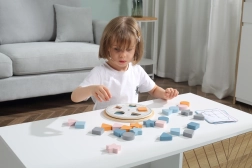 Detaļām ir gludas, noapaļotas malas, un tās pārklātas ar drošām, netoksiskām krāsām maigos pasteļtoņos – ideāli mazām bērnu rociņām.