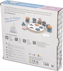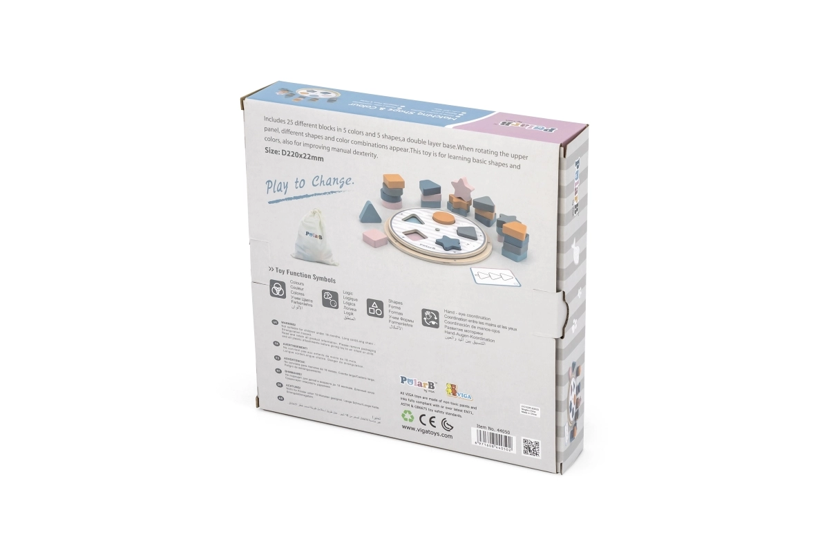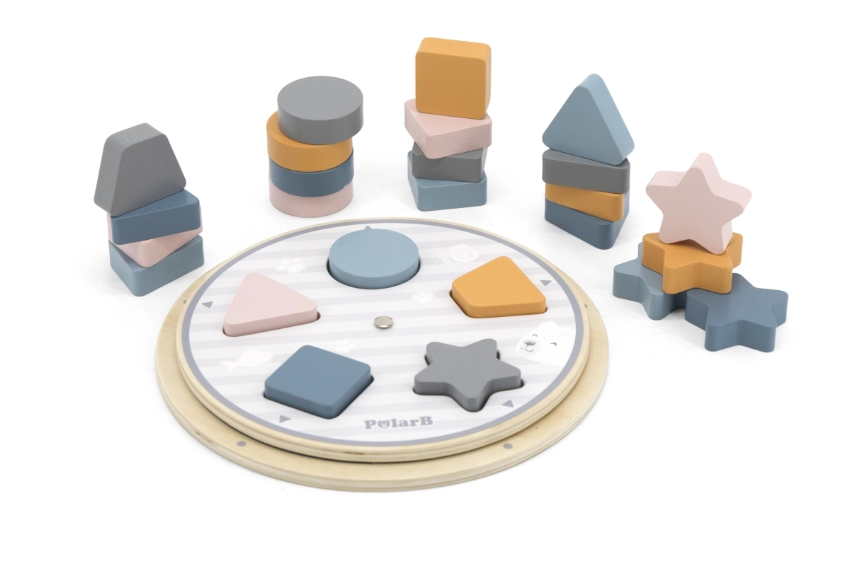 Gudra koka spēle pašiem mazākajiem, kas apvieno formu un krāsu šķirošanu, trenē sīko motoriku un loģisko domāšanu. Komplektā ir koka detaļas, rotējoša pamatne, kartītes ar paraugiem un tekstila maisiņš. Spēle no kolekcijas POLARB ir izgatavota no kvalitatīva koka, krāsota ar netoksiskām krāsām maigos pasteļtoņos un vienlaikus izklaidē, māca un attīsta bērnus jau no agrīna vecuma.