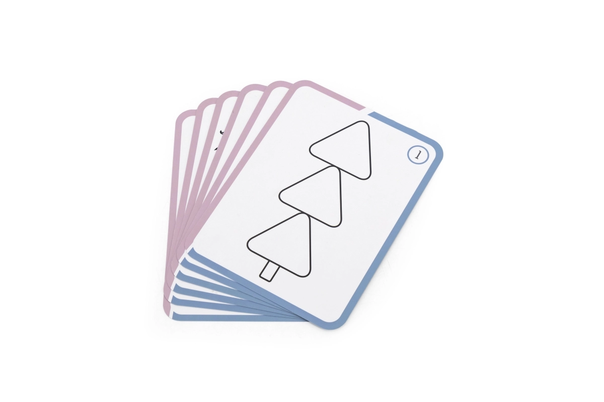 • Pilns komplekts: koka formas, rotējoša pamatne, uzdevumu kartītes un auduma maisiņš.