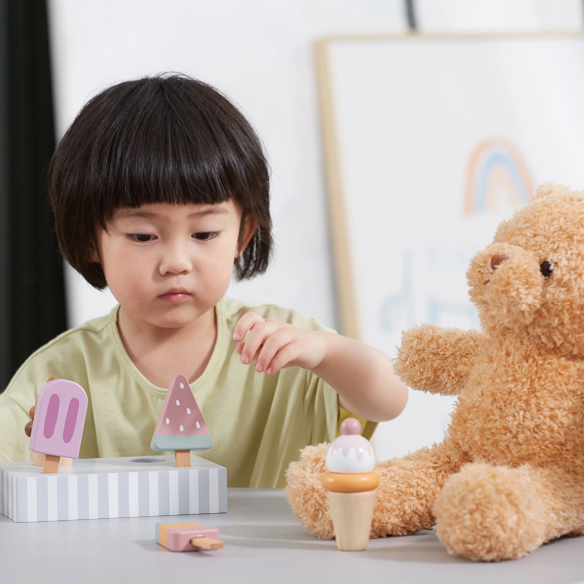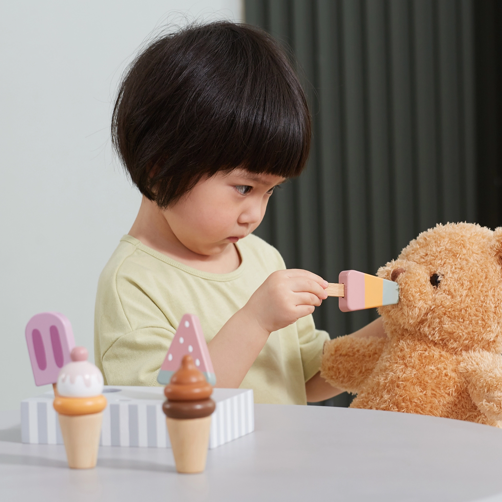 Pieci dažādi saldējumi iedvesmo bērnus lomu spēlēm, paplašina vārdu krājumu un attīsta sociālās prasmes kopīgas rotaļas laikā.