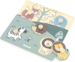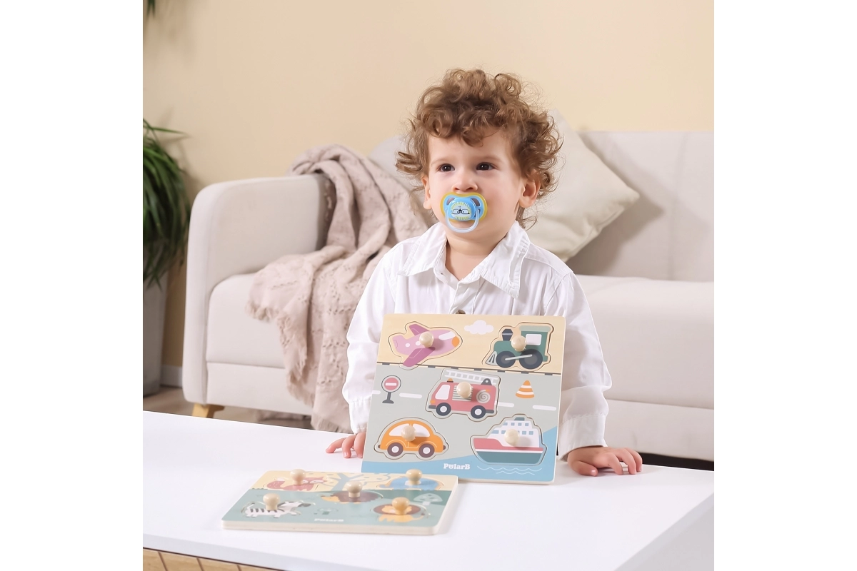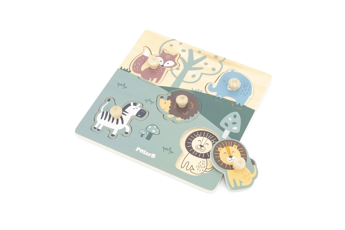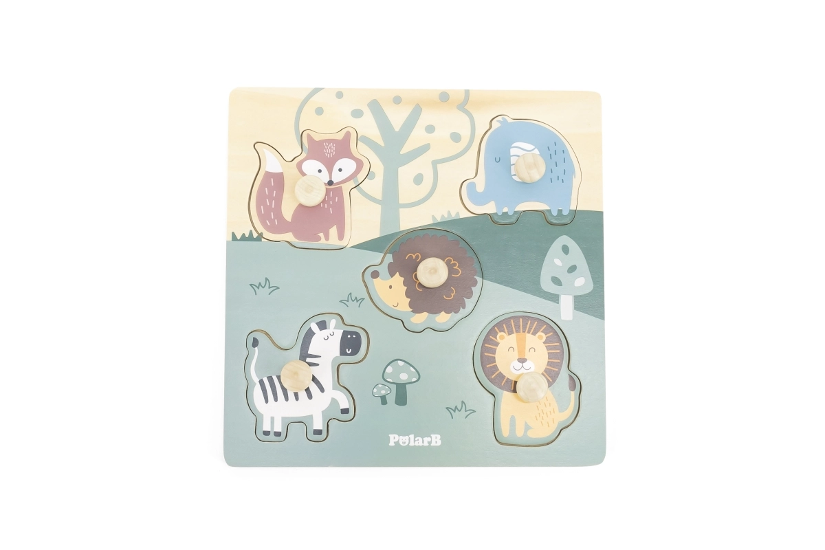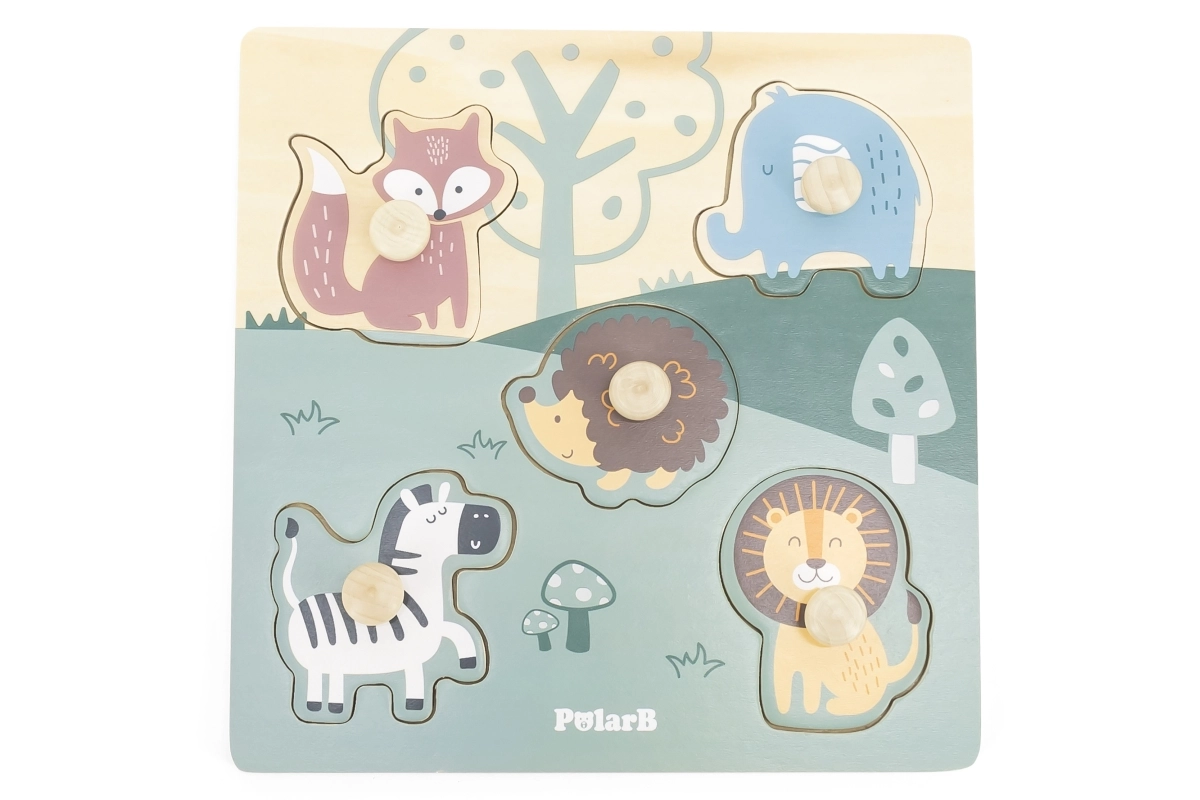 PolarB koka puzles apvieno kvalitatīvus materiālus un pārdomātu dizainu mazajiem pētniekiem. Katram gabaliņam ir koka rokturis, lai to viegli satvertu mazajiem pirkstiņiem un precīzi ievietotu atbilstošajā izgriezumā. Zem katras formas uz pamatnes ir uzzīmēts dzīvnieciņa attēls, kas bērniem palīdz un motivē turpināt likt puzli.