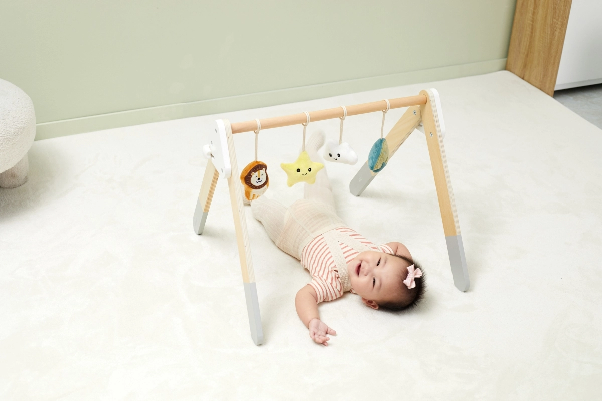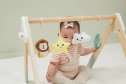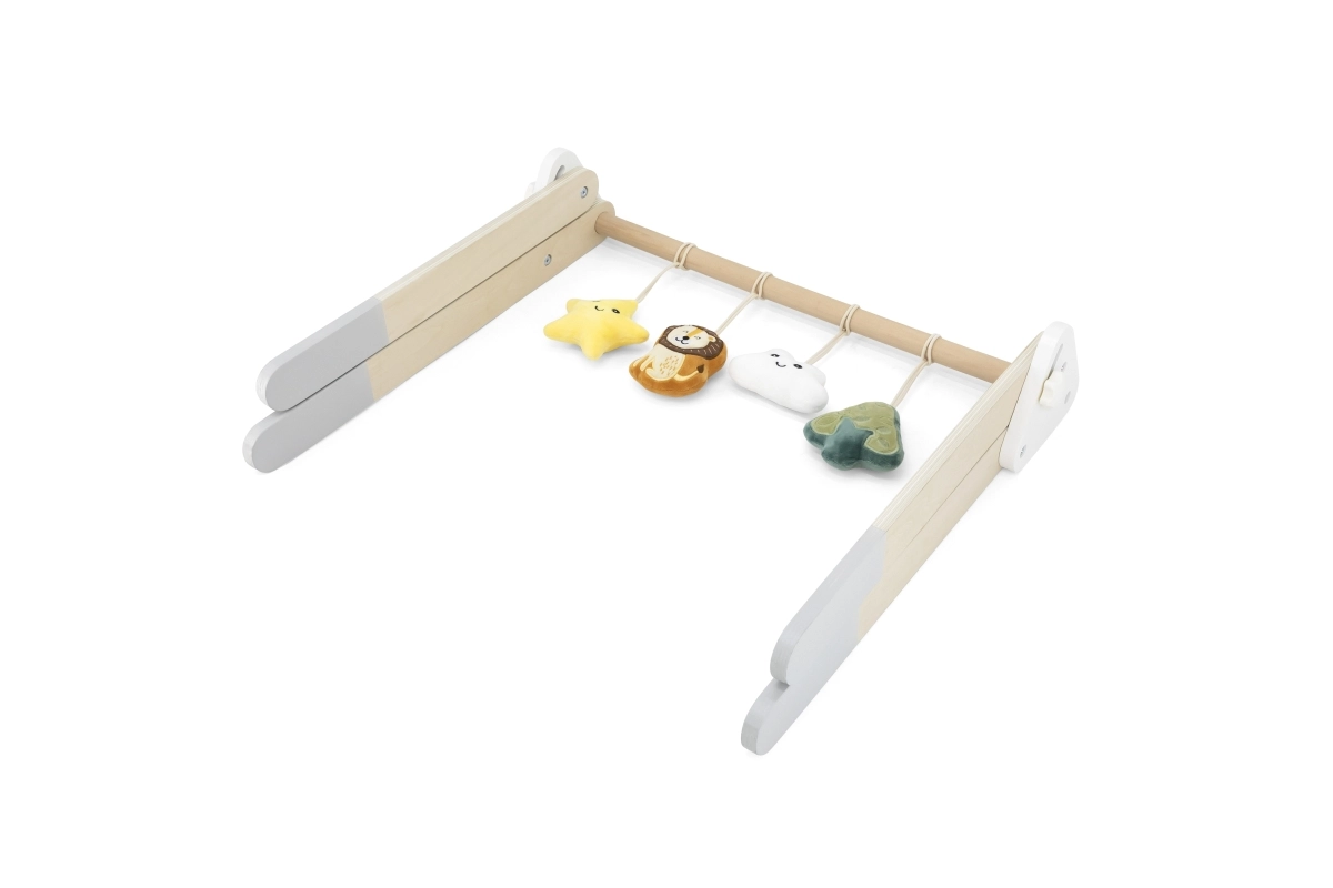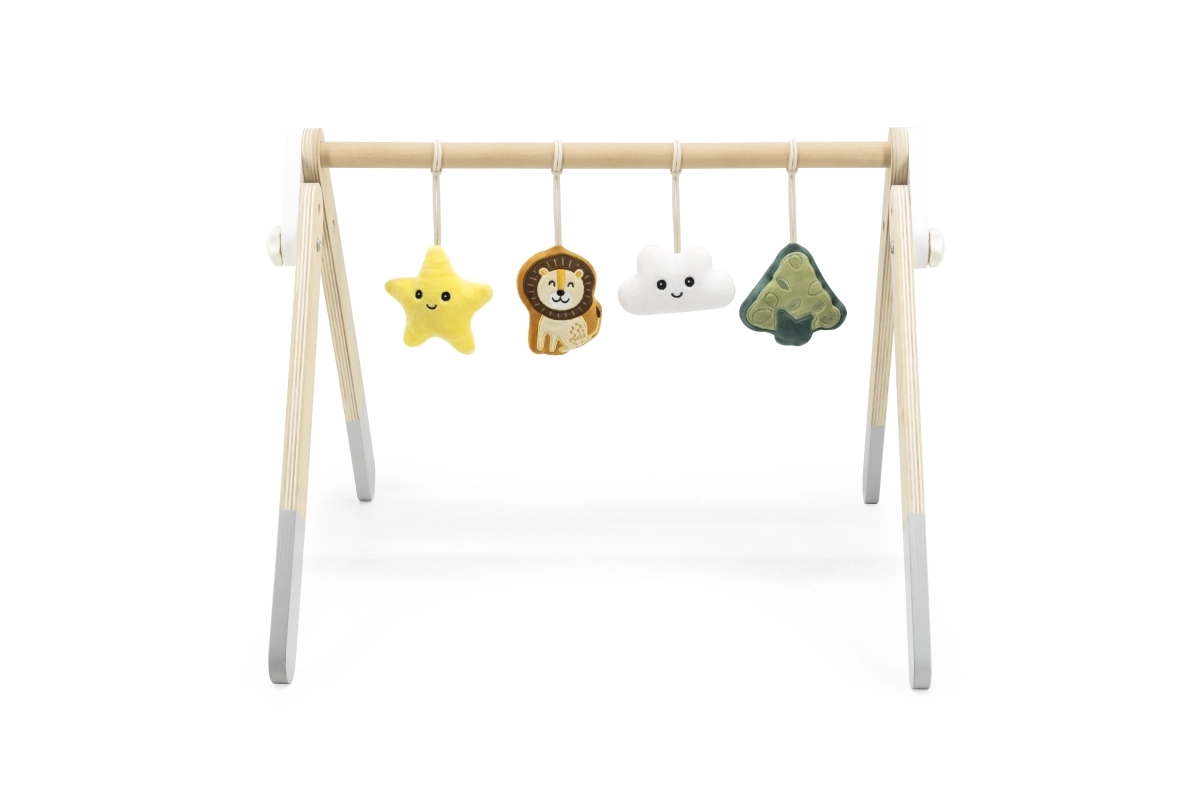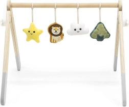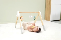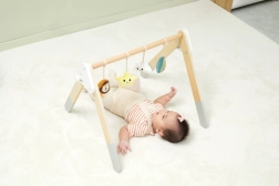 Šī kvalitatīvā koka baby gym hrazdiņa ir piemērota jau no 1. mēneša. Dabīgais izskats un patīkamās krāsas iederas jebkurā interjerā. Piekarināmās rotaļlietas piesaista mazuli ar skaņām un dažādām tekstūrām, kas stimulē redzi, dzirdi un tausti.