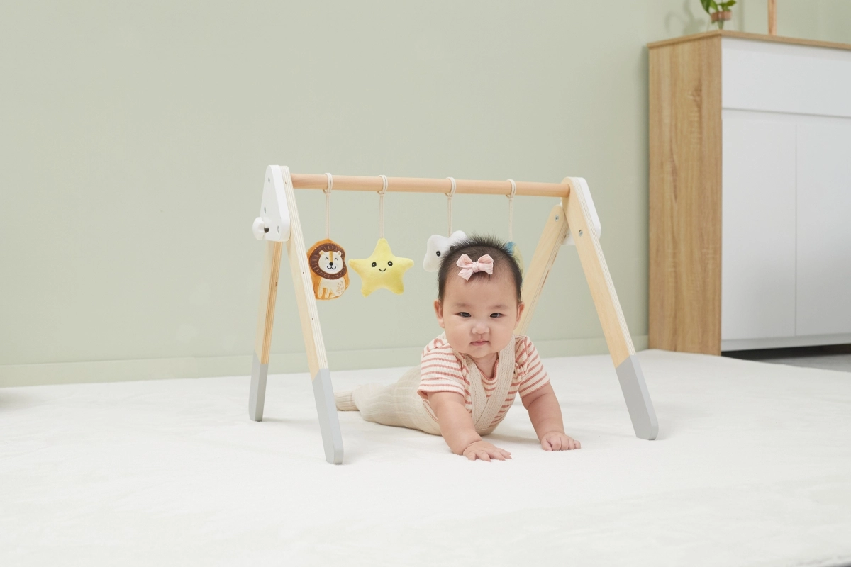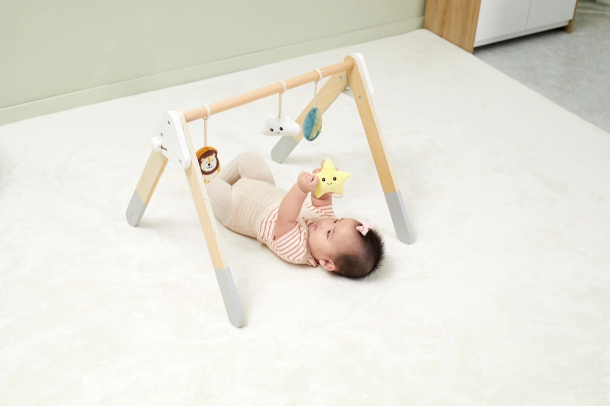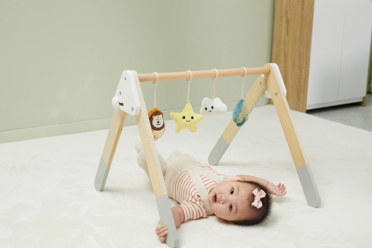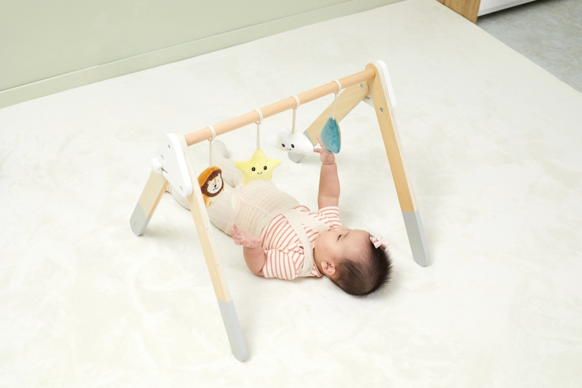 Šī kvalitatīvā koka baby gym hrazdiņa ir piemērota jau no 1. mēneša. Dabīgais izskats un patīkamās krāsas iederas jebkurā interjerā. Piekarināmās rotaļlietas piesaista mazuli ar skaņām un dažādām tekstūrām, kas stimulē redzi, dzirdi un tausti.