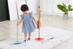 Pateicoties dažādajiem uzkopšanas rīkiem, bērni rotaļājoties pilnveido motoriku un līdzsvaru.