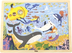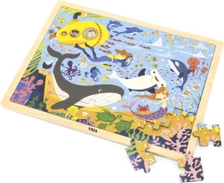 Ar koka puzli Jūras dzīve jūs atklāsiet brīnišķīgu jūras radību klāstu, piemēram, vaļus un zivtiņas, kā arī dzeltenu zemūdeni.